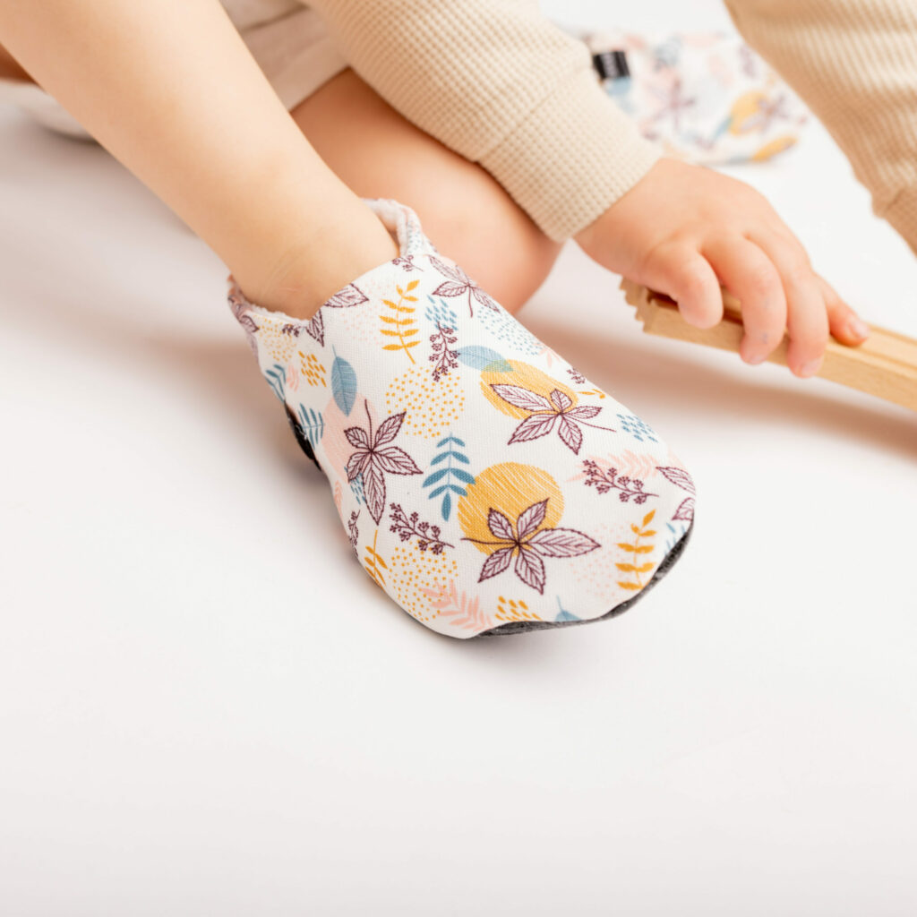 They are super soft, comfortable, spacious, airy, with a non-slip sole, and made of natural materials. They are suitable for babies who are just beginning to stand up and walk, as well as for those who are a little older and already discovering the joys of kindergarten. As they have no fasteners or velcro they are easy to put on, and children quickly learn to put them on themselves without parental help, which is great for the process of becoming independent.