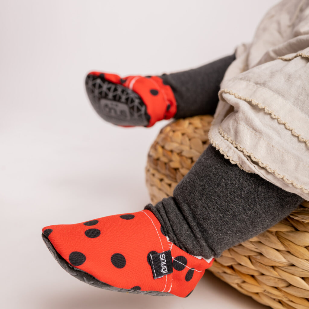 Snugi slippers are a smart choice for encouraging good quality movement patterns and posture in babies and children. Because they are so soft and made of natural materials, they give a feeling of walking on barefoot. They do not constrict the child’s feet, as they are wide enough in the toe area to allow the toes to spread properly during the weight-bearing and pushing-off phase.