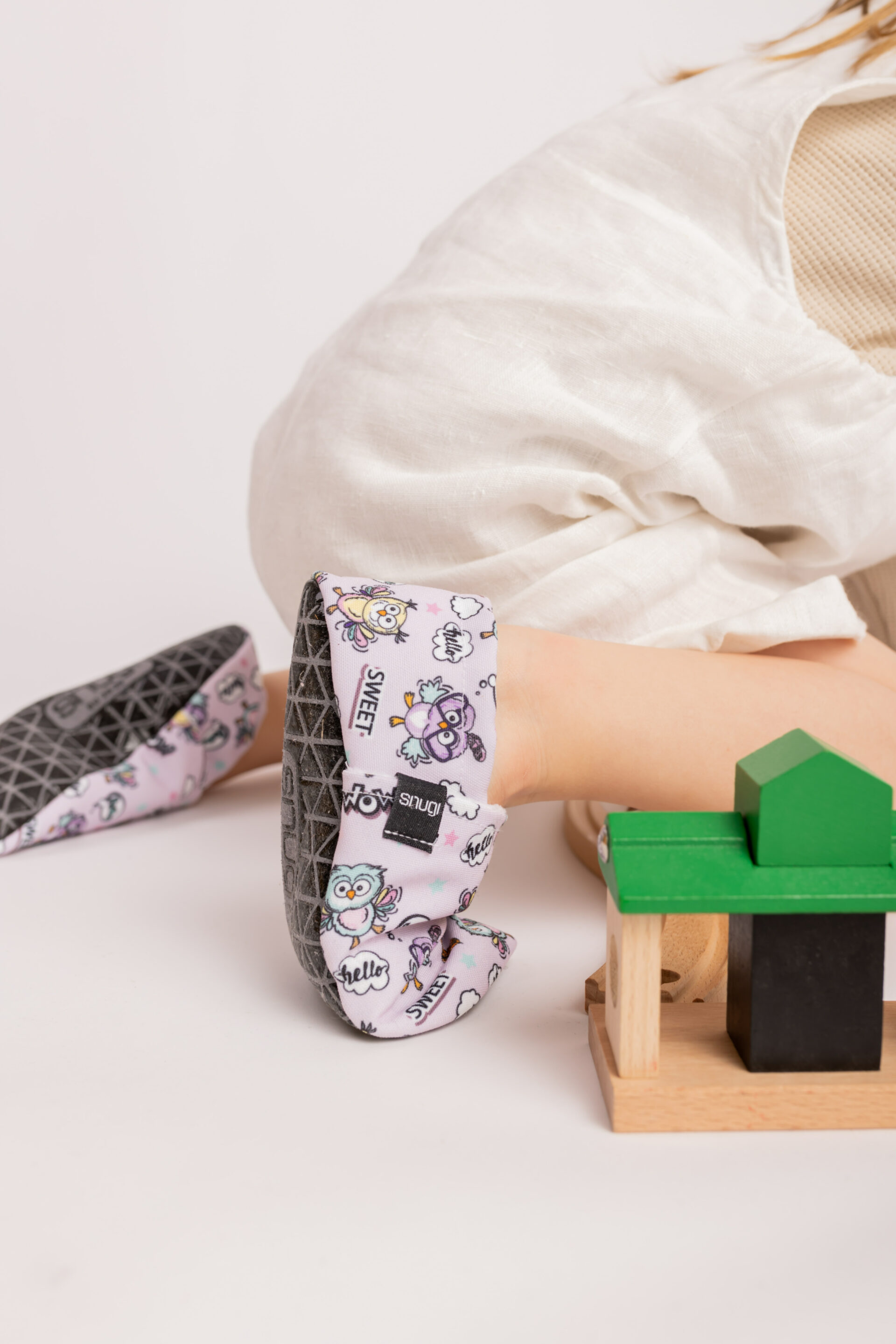 They allow the skin to breathe. Snugi slippers are breathable, so they provide good hygiene conditions and prevent the development of fungal infections. They are easy to put on, and do not get in the way or slip off during play. Children can put them on without help.