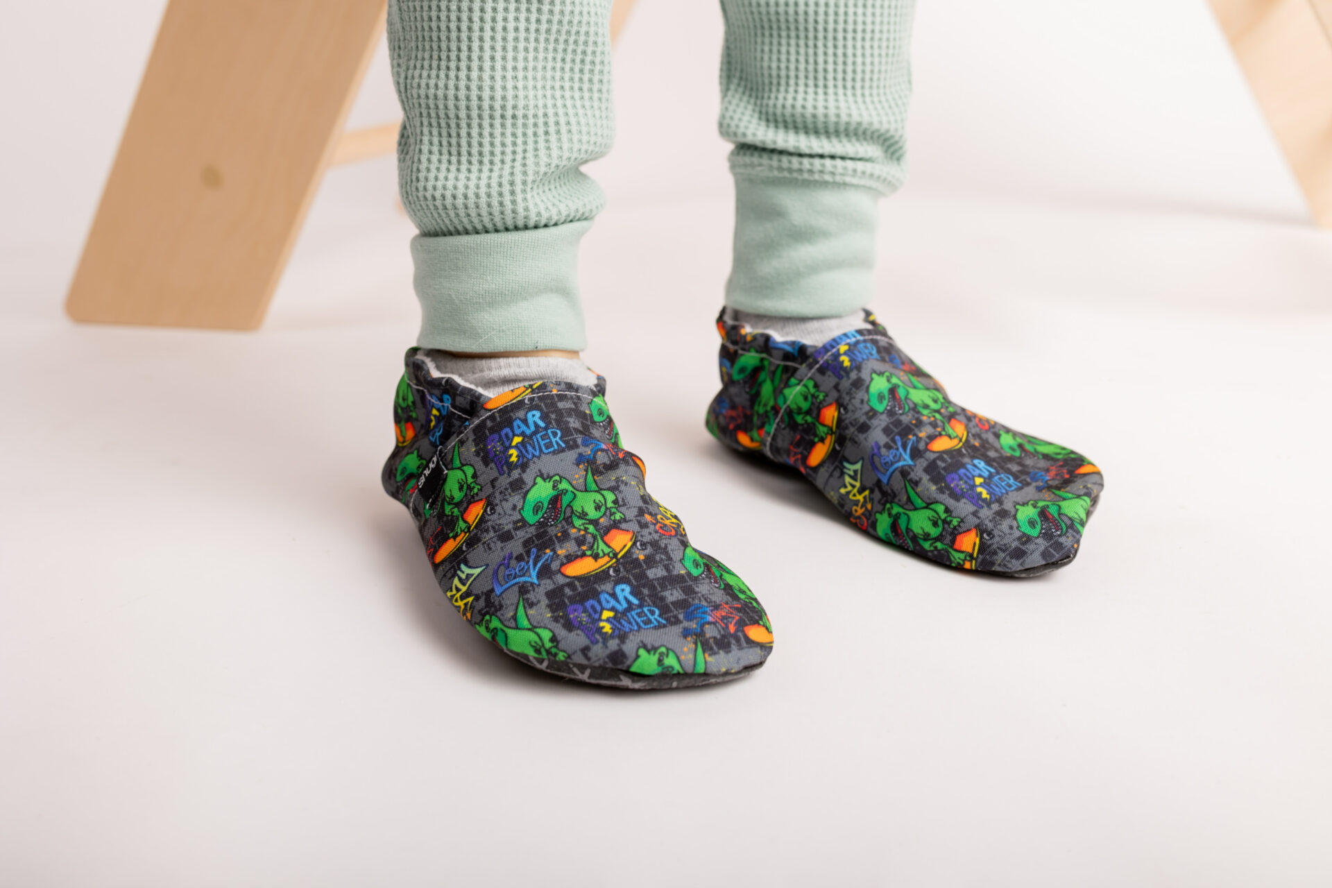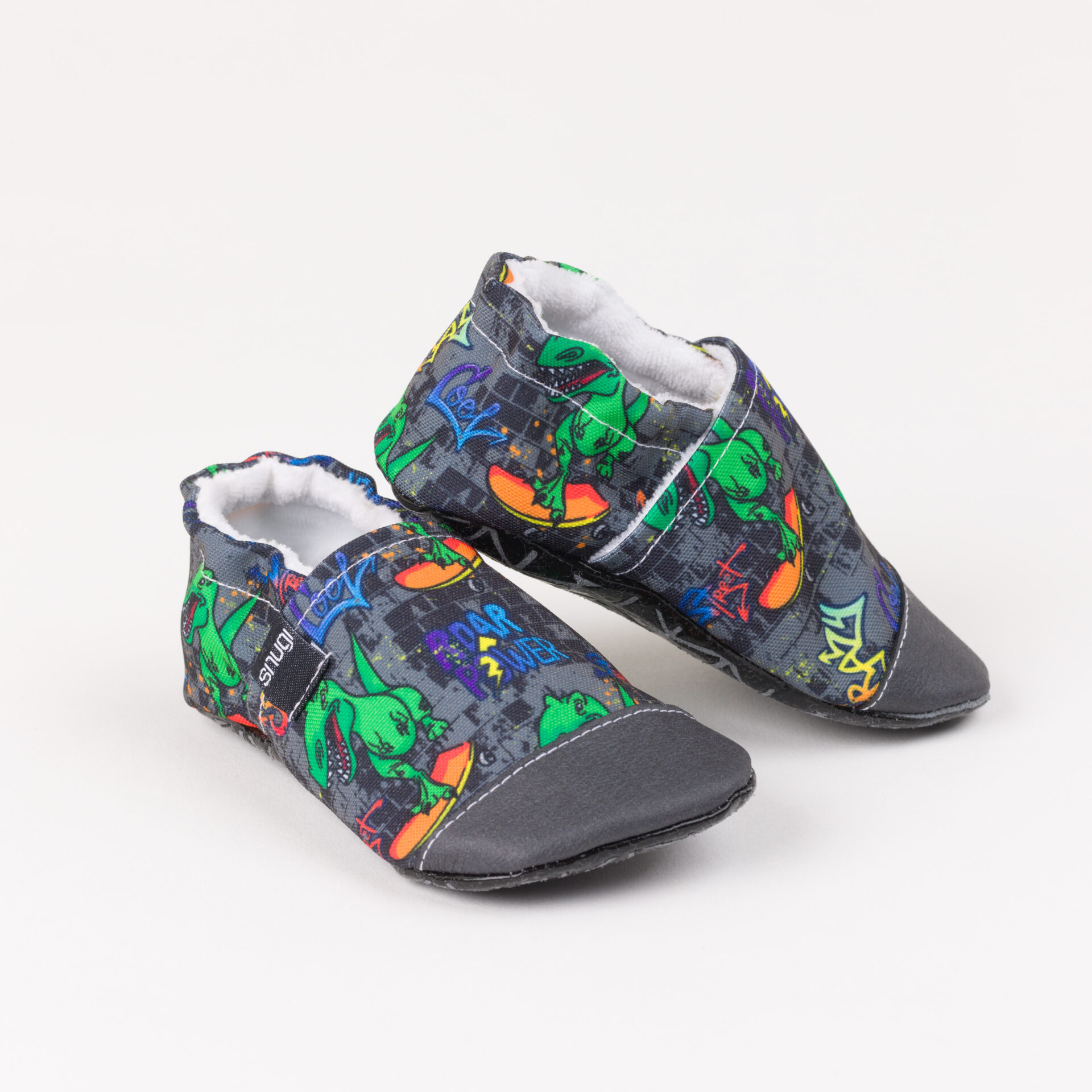 Fun dinos riding skateboards. Our children's slippers are comfortable, soft and breathable and are considered the best approximation to barefoot walking.