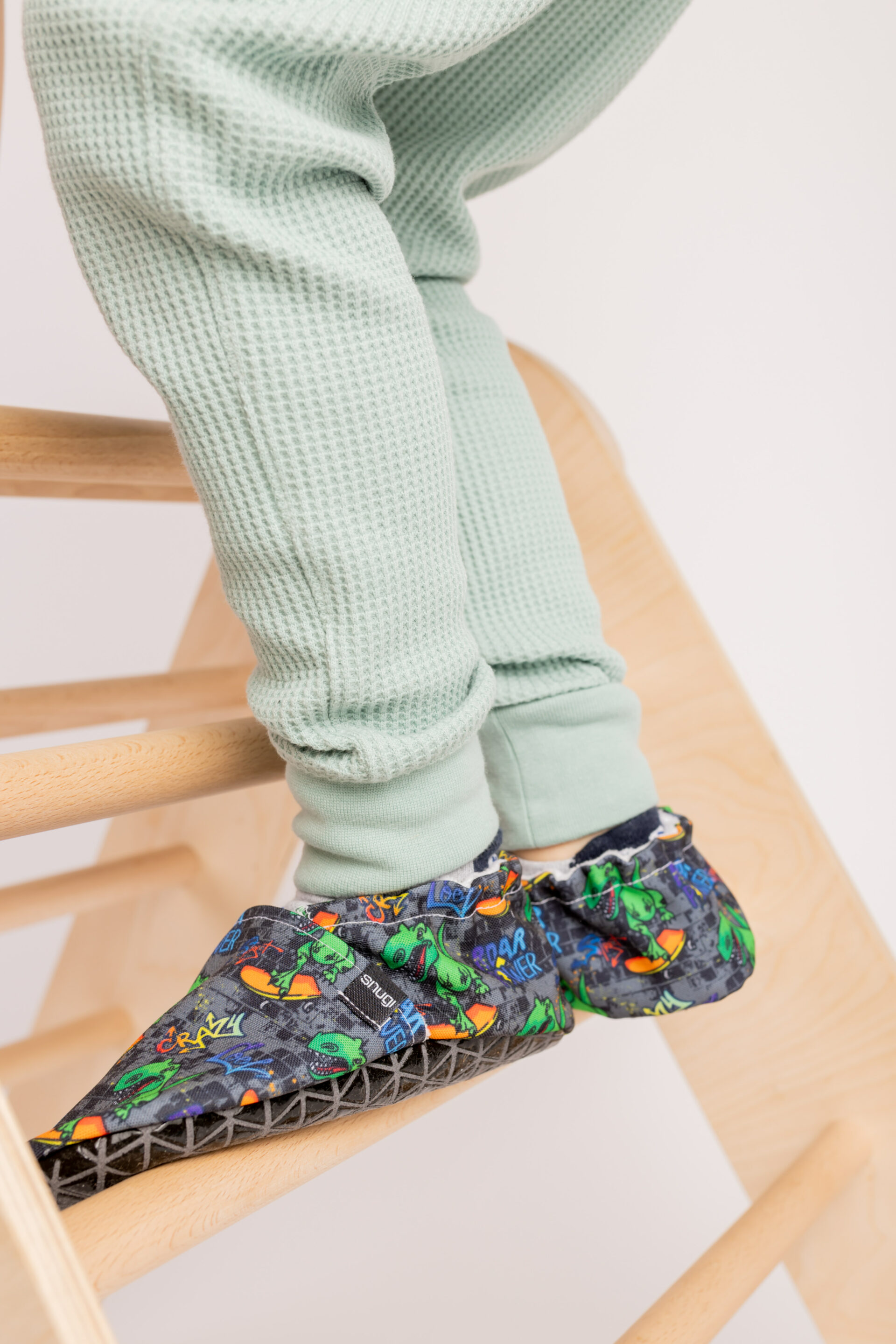They allow the skin to breathe. Snugi slippers are breathable, so they provide good hygiene conditions and prevent the development of fungal infections. They are easy to put on, and do not get in the way or slip off during play. Children can put them on without help.