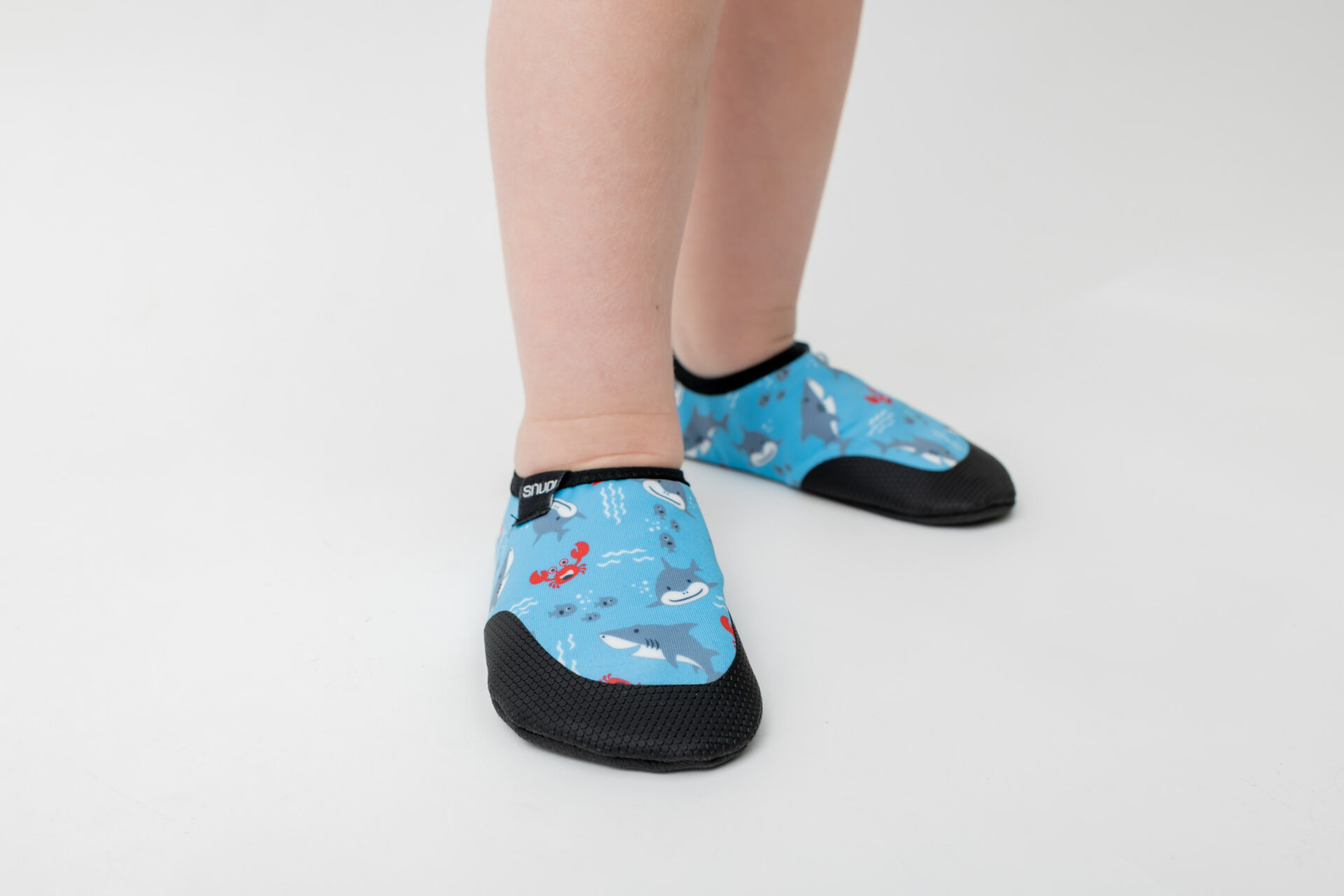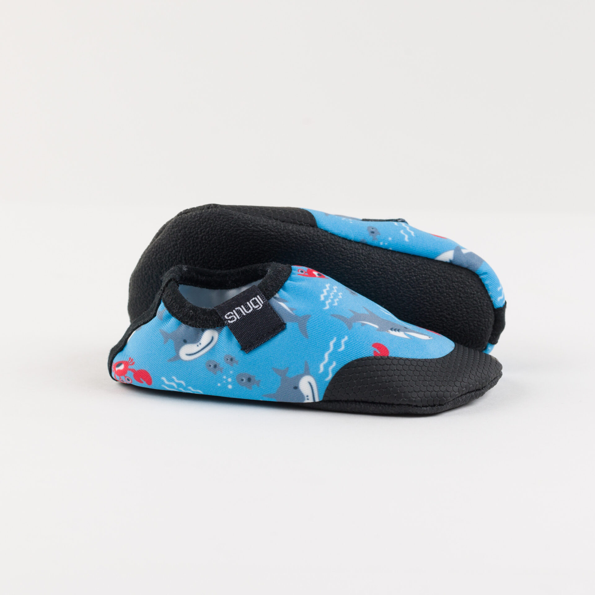Friendly sharks, fish and crabs on our soft water slippers with non-slip soles and featuring quick-drying technology.