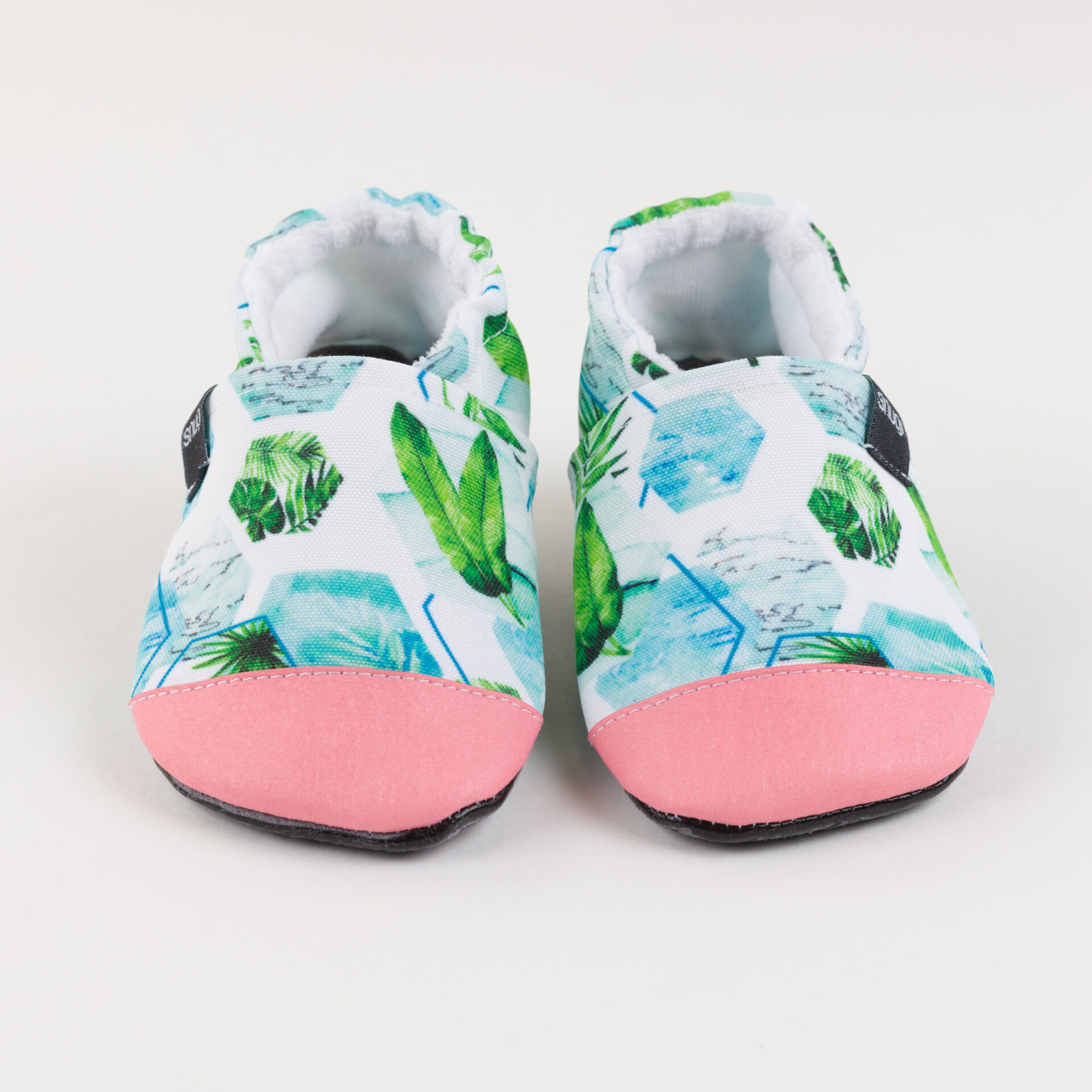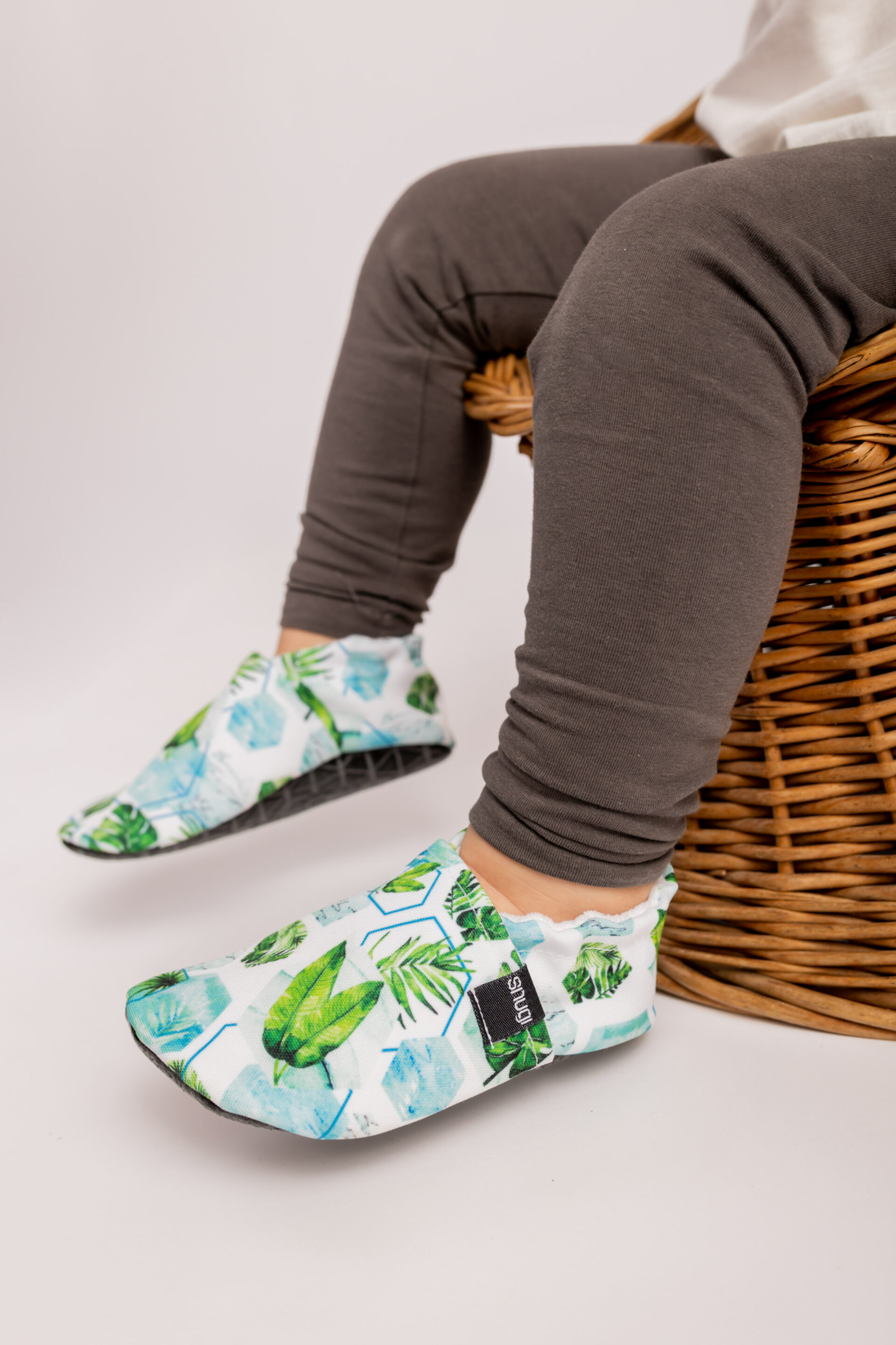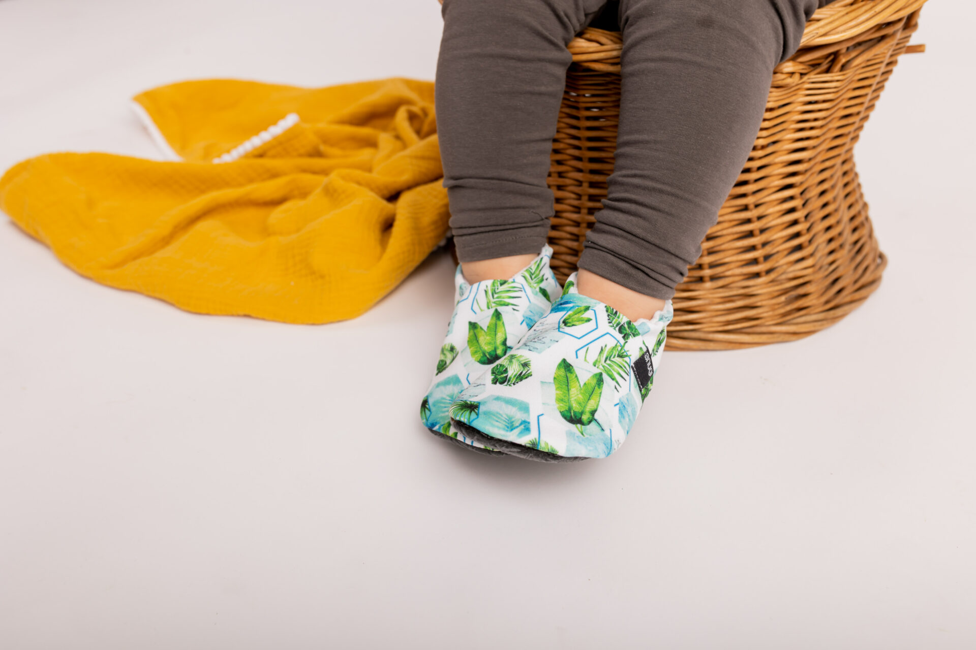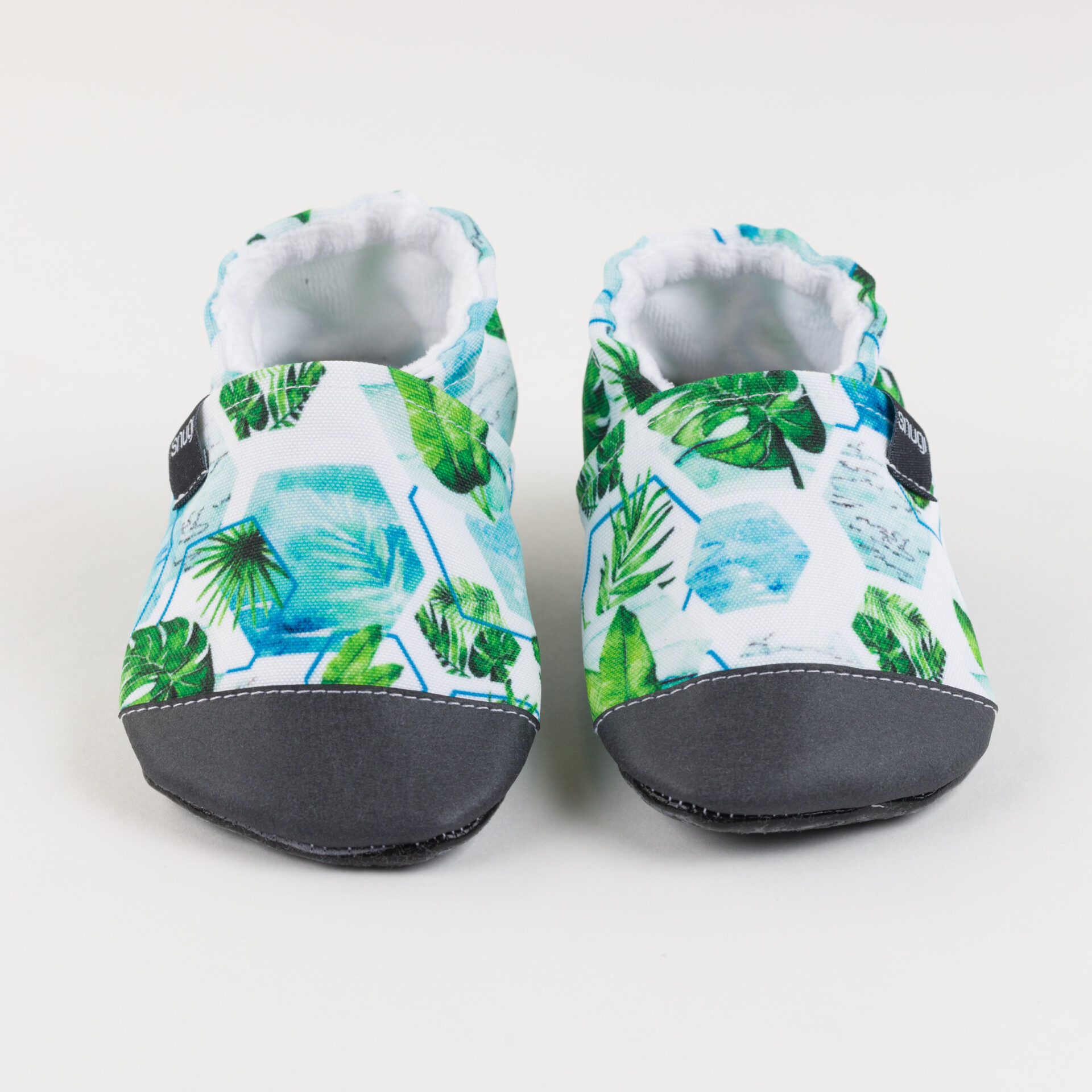 Plavo-zeleno lišće iz tropske džungle za potpuno lagan korak. Naše dječje papuče su udobne, mekane i prozračne te najbolje predstavljaju bosonogo hodanje.