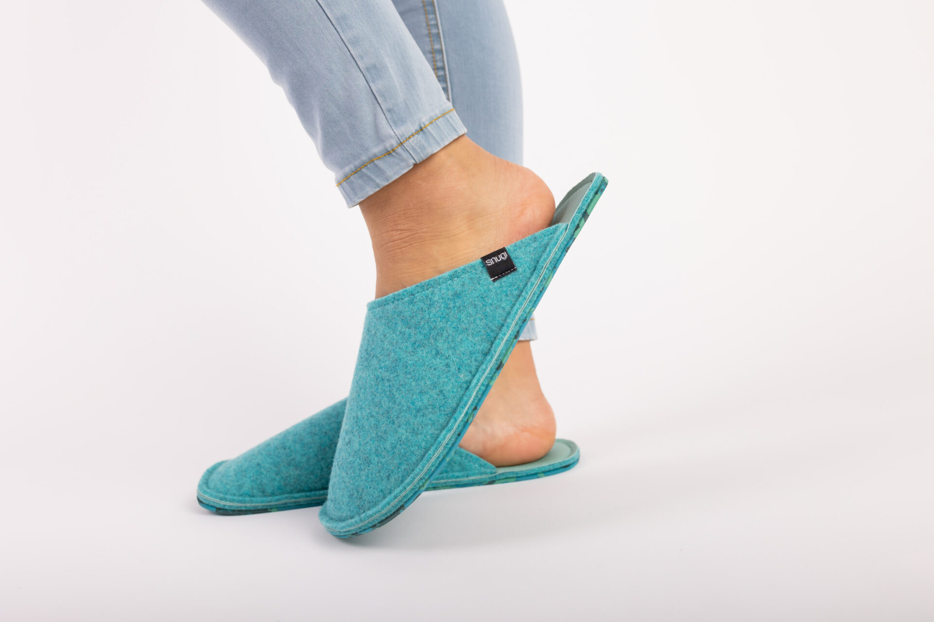 Lahki, mehki in udobni. Ročno izdelani copati so narejeni iz volnenega filca, notranjost podplata je še dodatno zaščitena z mikrofibro, ki ima certifikat Vegan in skrbi, da vaša ostala ostanejo sveža in zdrava v vsakem letnem času.