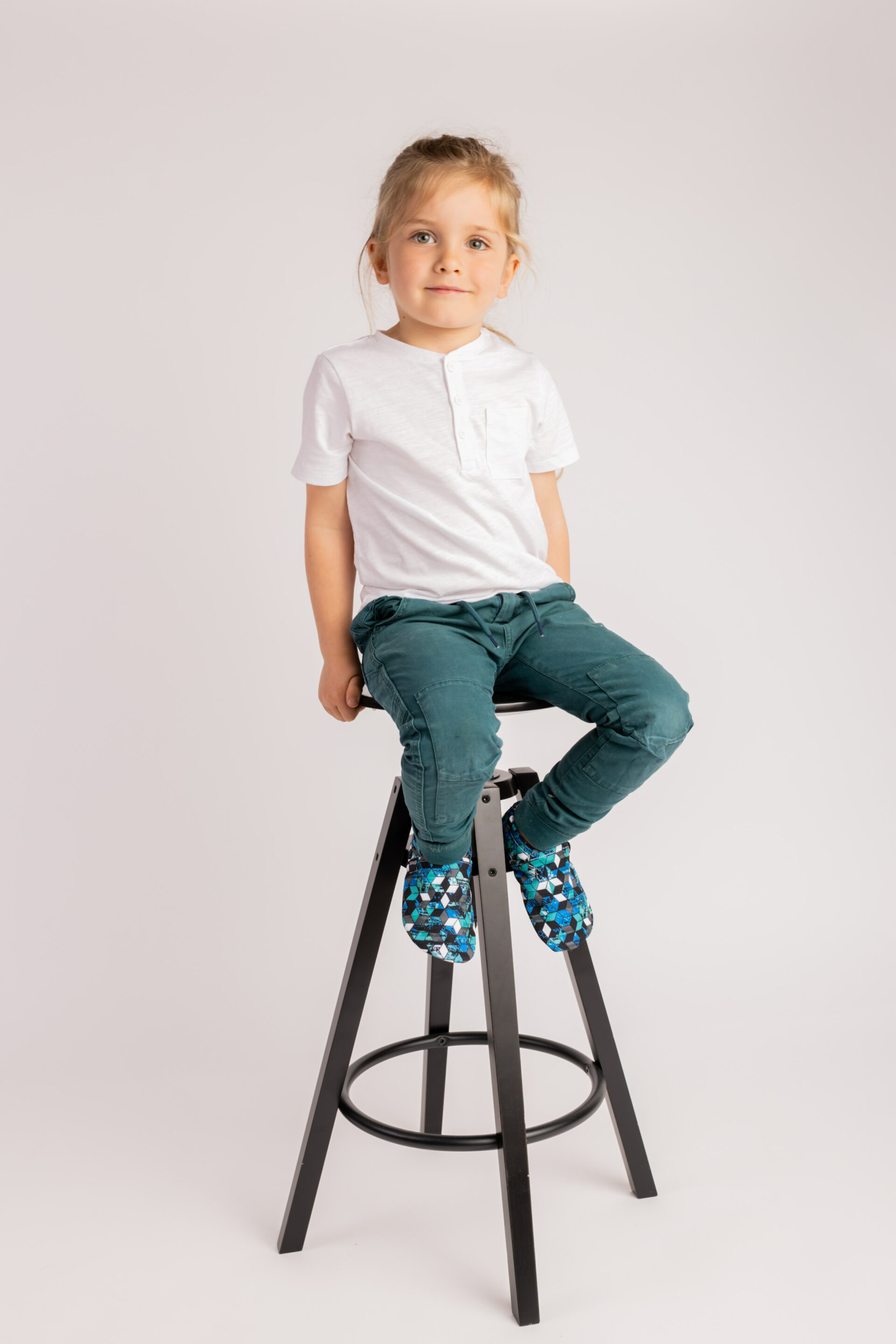 Čudoviti potisk, ki se bo podal tako puncam kot fantom. Naši otroški copati so udobni, mehki in zračni ter veljajo za najboljši približek bosonogi hoji.