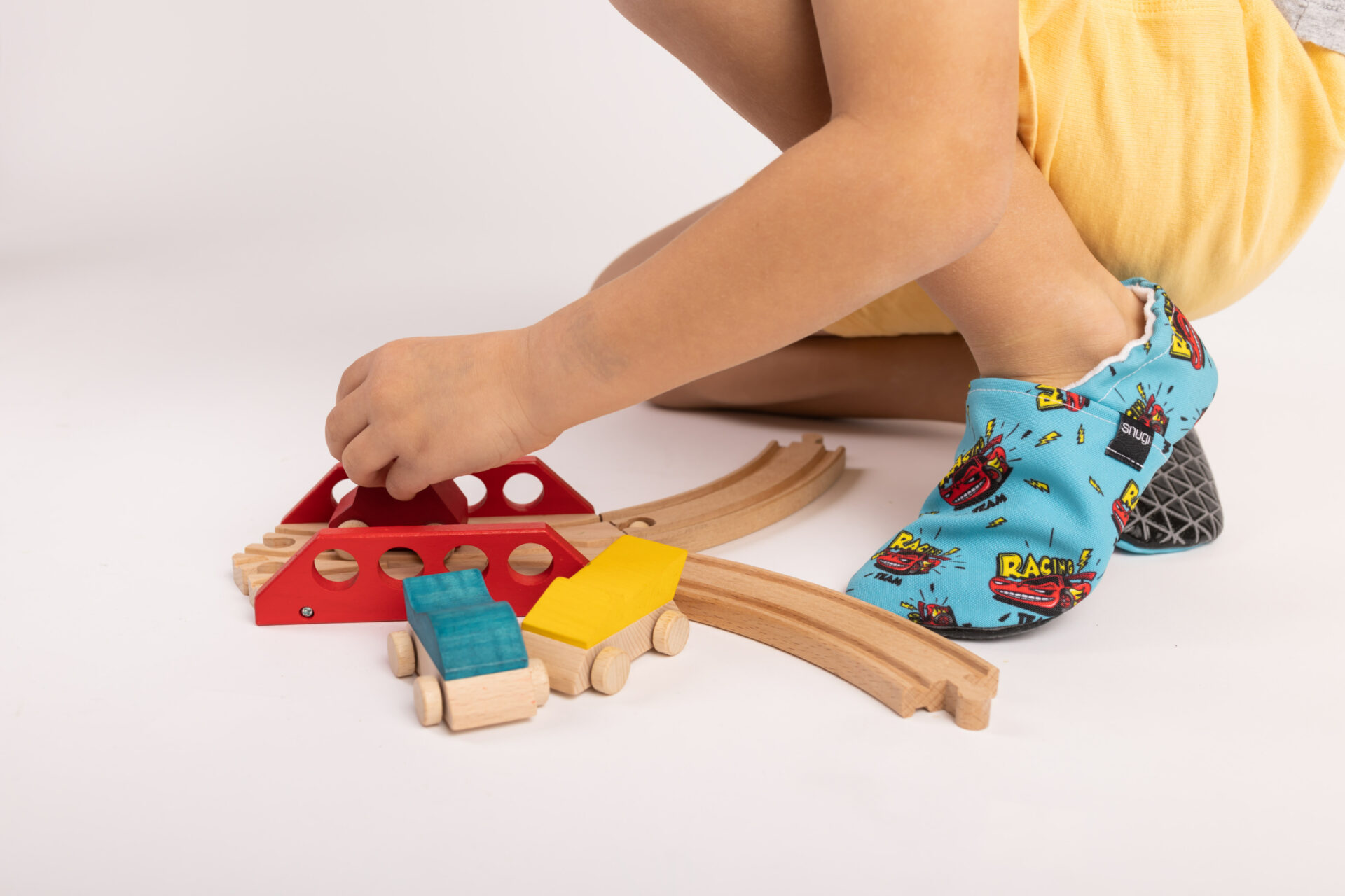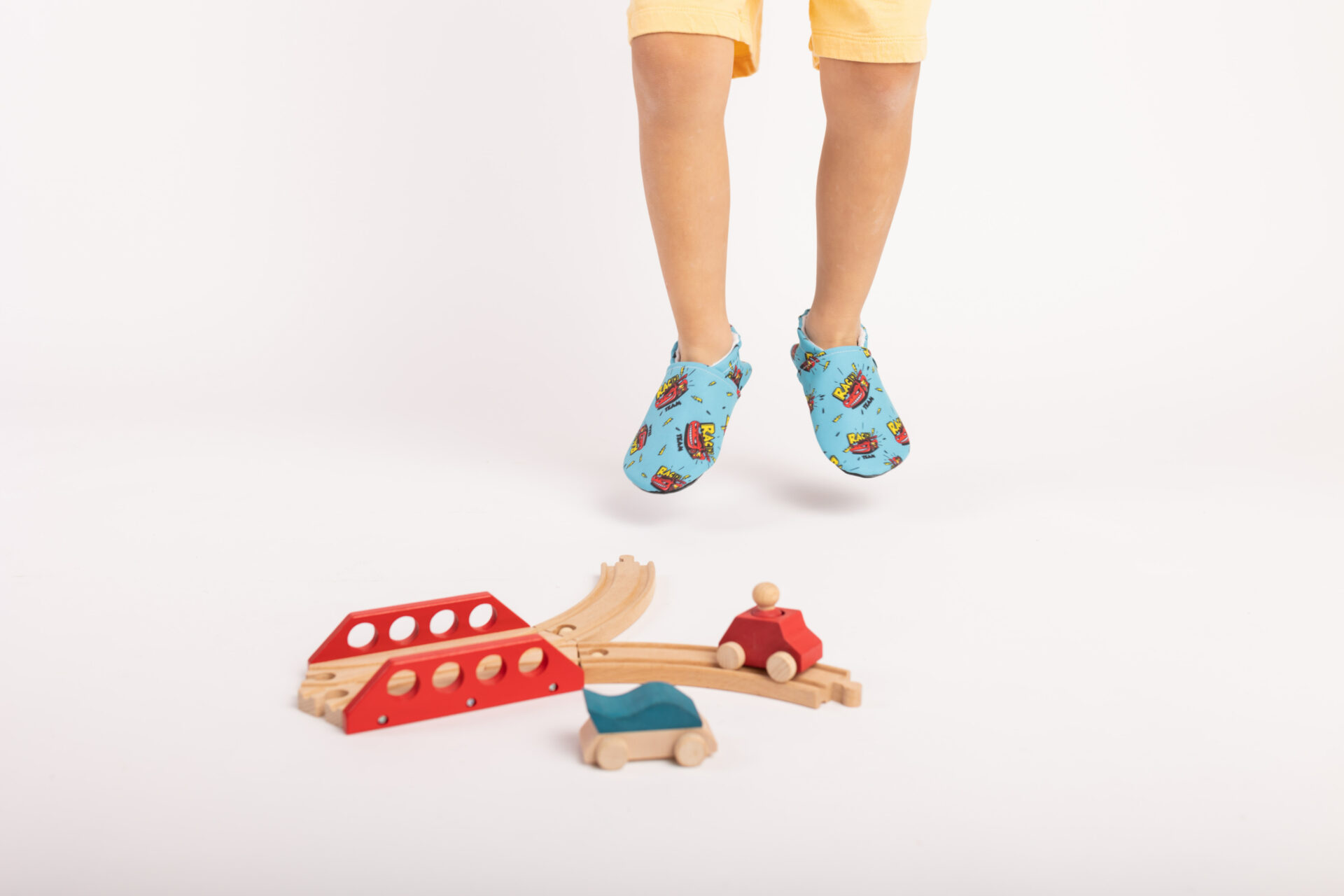 Dirkalni avti na udobnih, mehkih in zračnih otroških copatih, ki so najboljši približek bosonogi hoji.