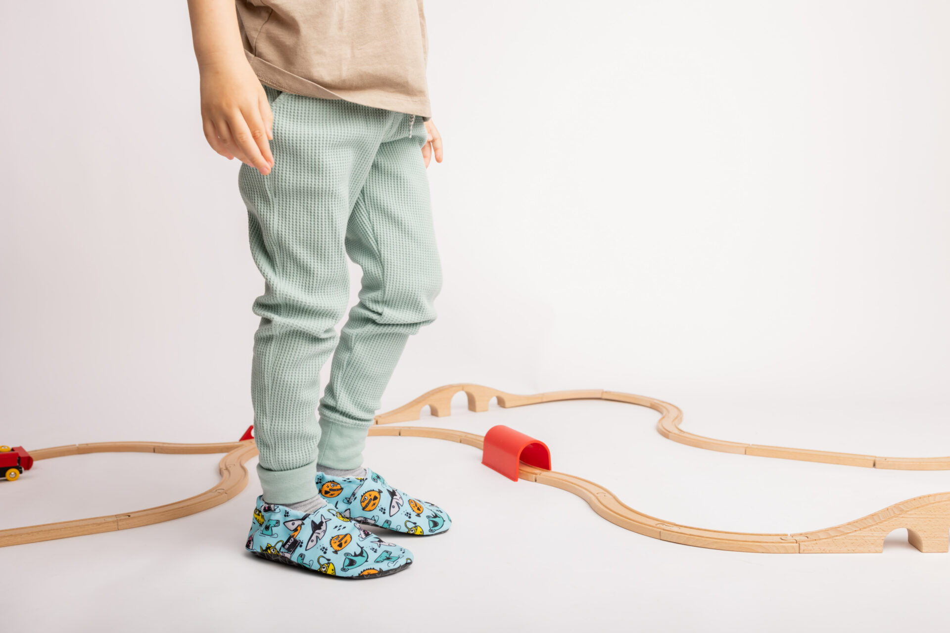 Otroci imajo različna stopala, zato smo elastiko na copatih namenoma ohranili ohlapno, da otroka ne tišči. Če se copatki zaradi tega sezuvajo, sledite našim preprostim navodilom.