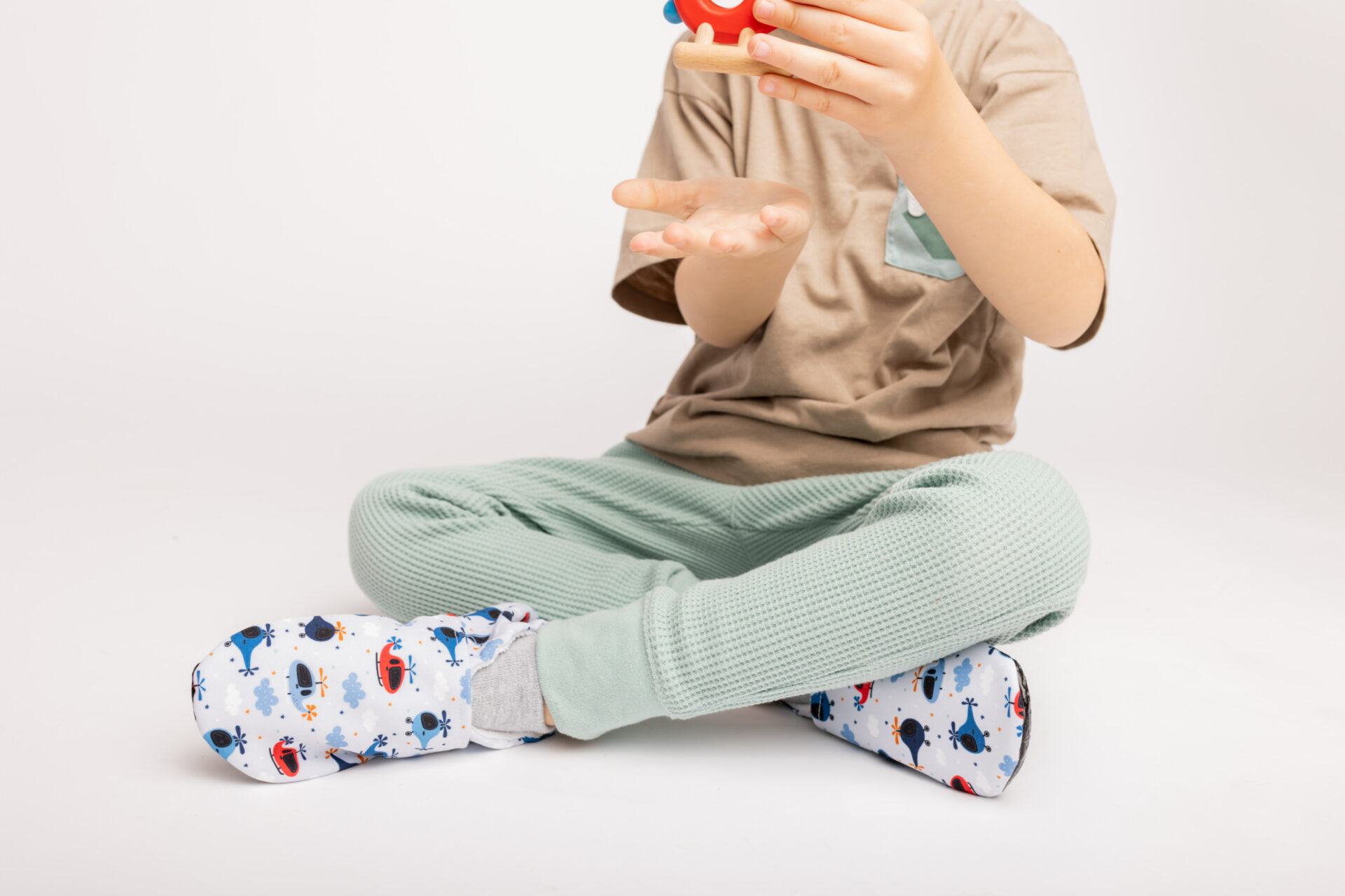 Otroci imajo različna stopala, zato smo elastiko na copatih namenoma ohranili ohlapno, da otroka ne tišči. Če se copatki zaradi tega sezuvajo, sledite našim preprostim navodilom.
