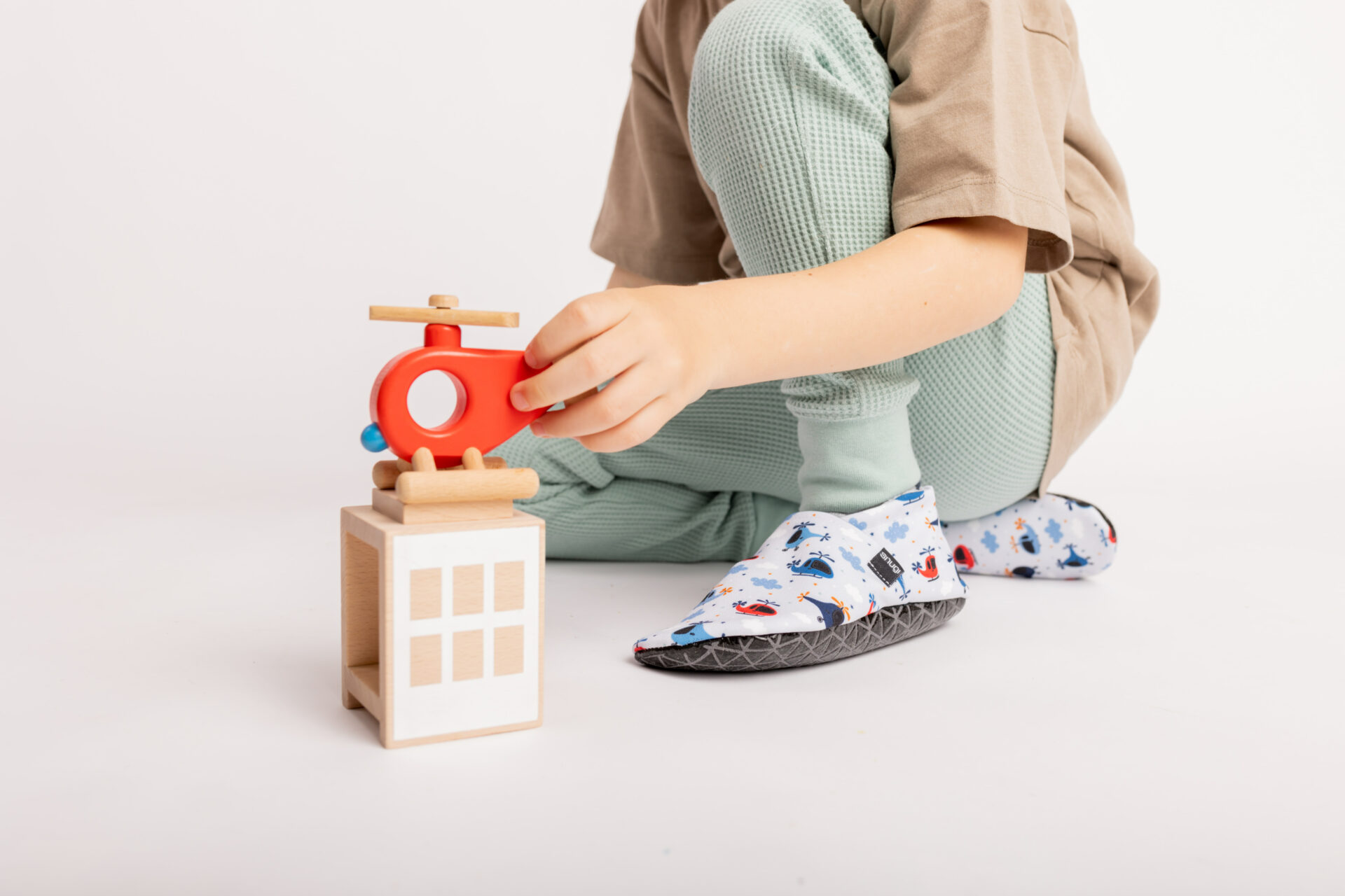 Poletite proti avanturi s čudovitimi helikopterji. Naši otroški copati so udobni, mehki in zračni ter veljajo za najboljši približek bosonogi hoji.