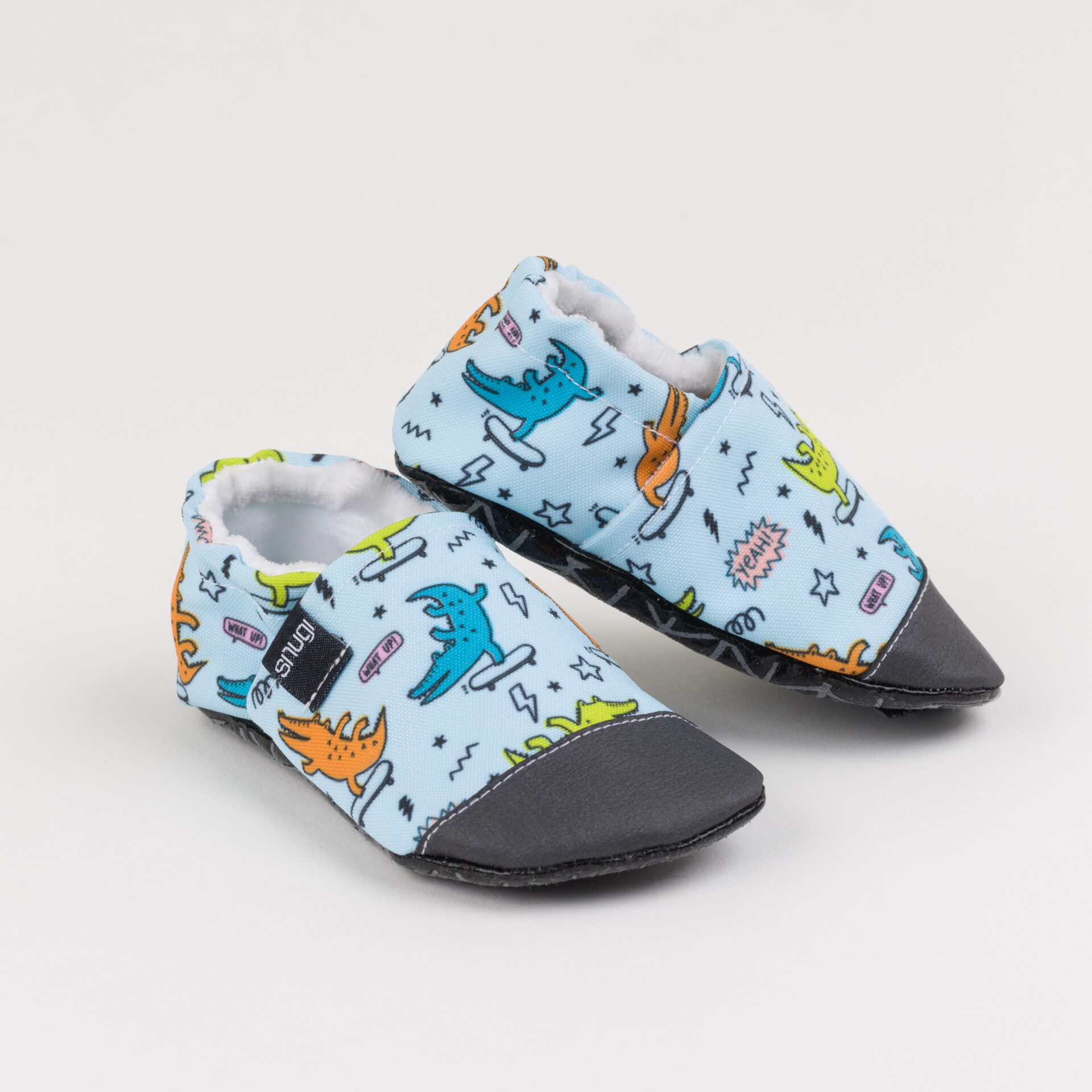 Krokodili na zabavni vožnji z rolko. Naši otroški copati so udobni, mehki in zračni ter veljajo za najboljši približek bosonogi hoji.