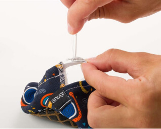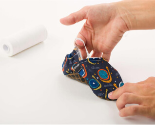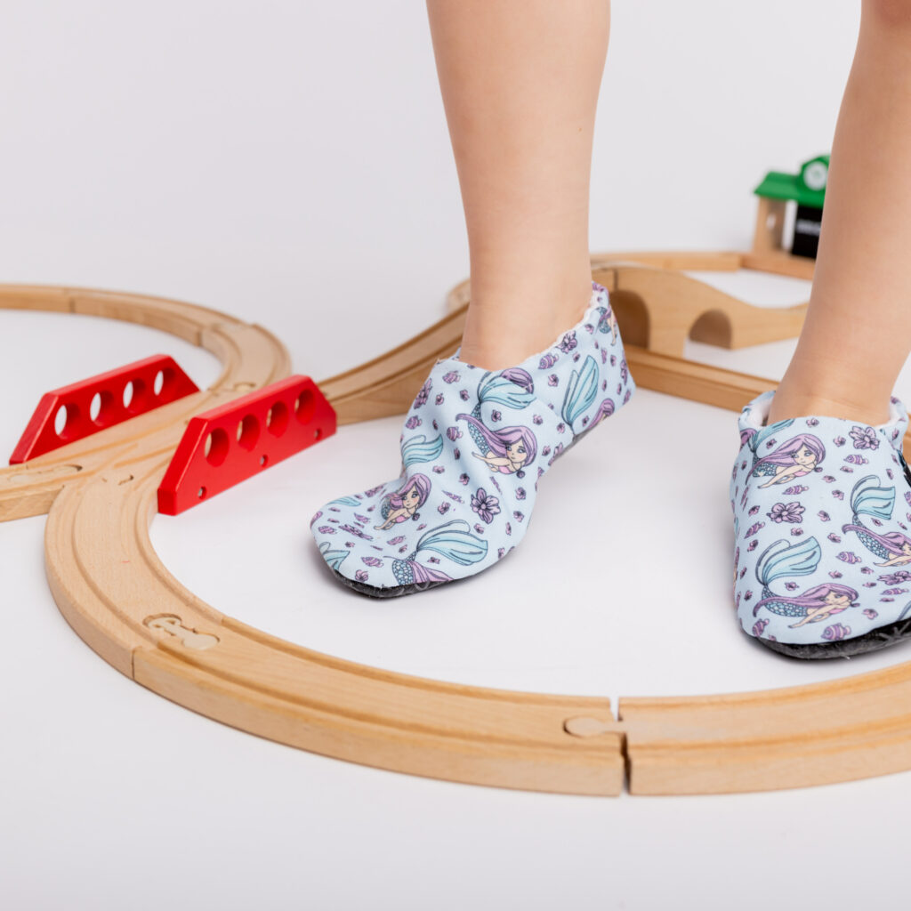 Otroci imajo različna stopala, zato smo elastiko na copatih namenoma ohranili ohlapno, da otroka ne tišči. Če se copatki zaradi tega sezuvajo, sledite našim preprostim navodilom.
