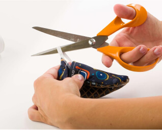 Potegnite elastiko kot prikazuje slika in jo prerežite s škarjami.