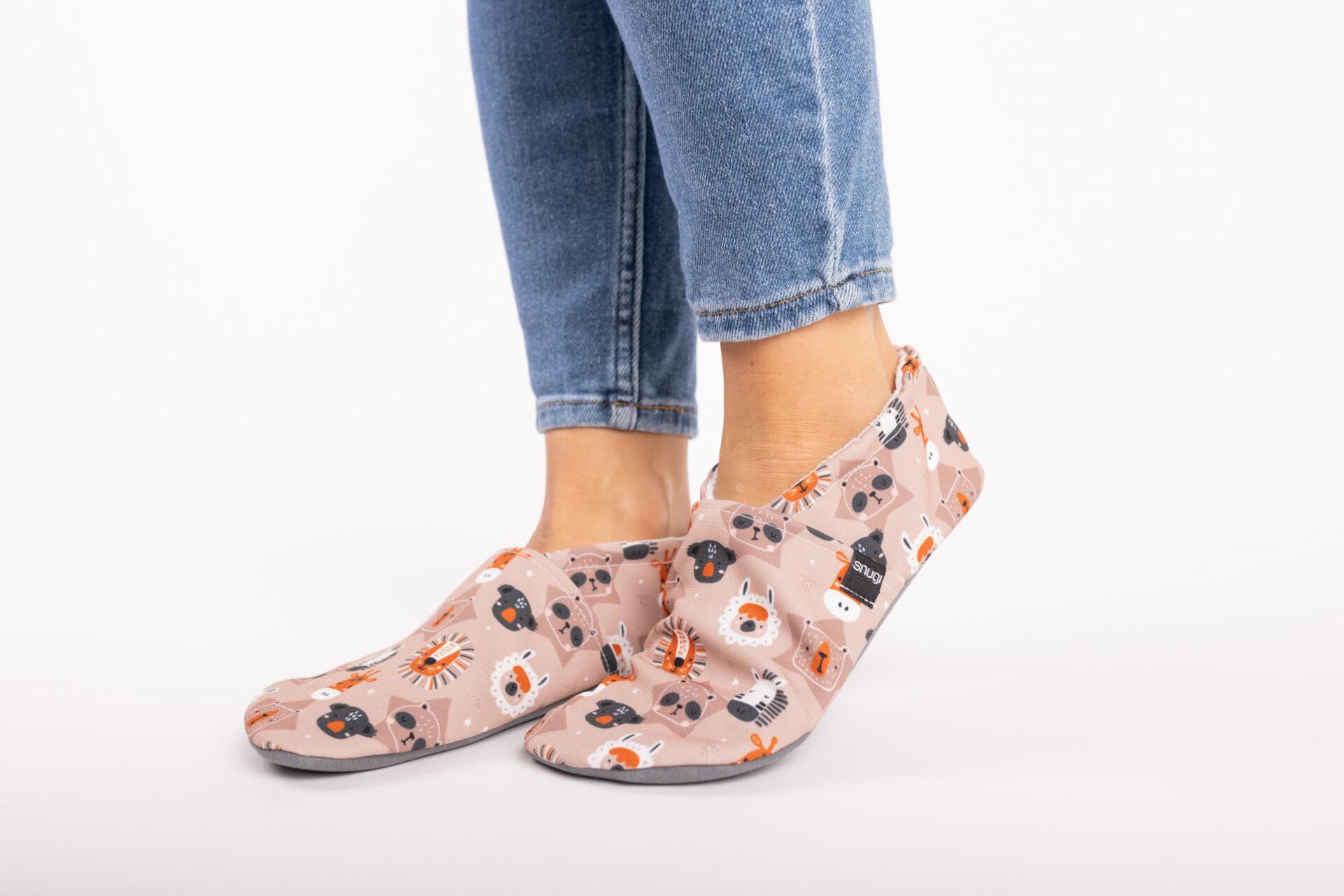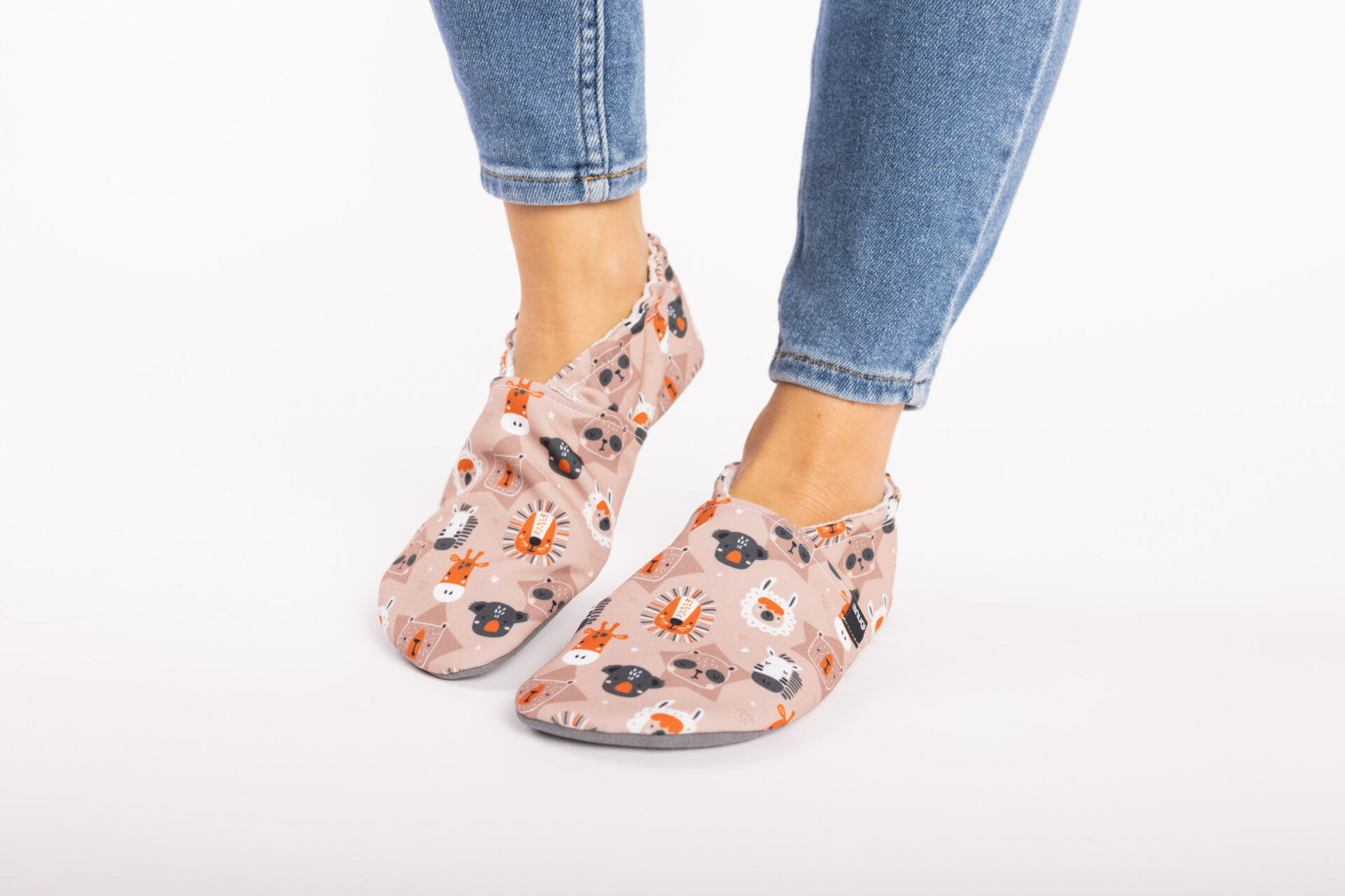 Motivi iz živalskega vrta elegantno krasijo naše udobne in mehke copate, ki posnemajo bosonogo hojo in vam nudijo zaščito.