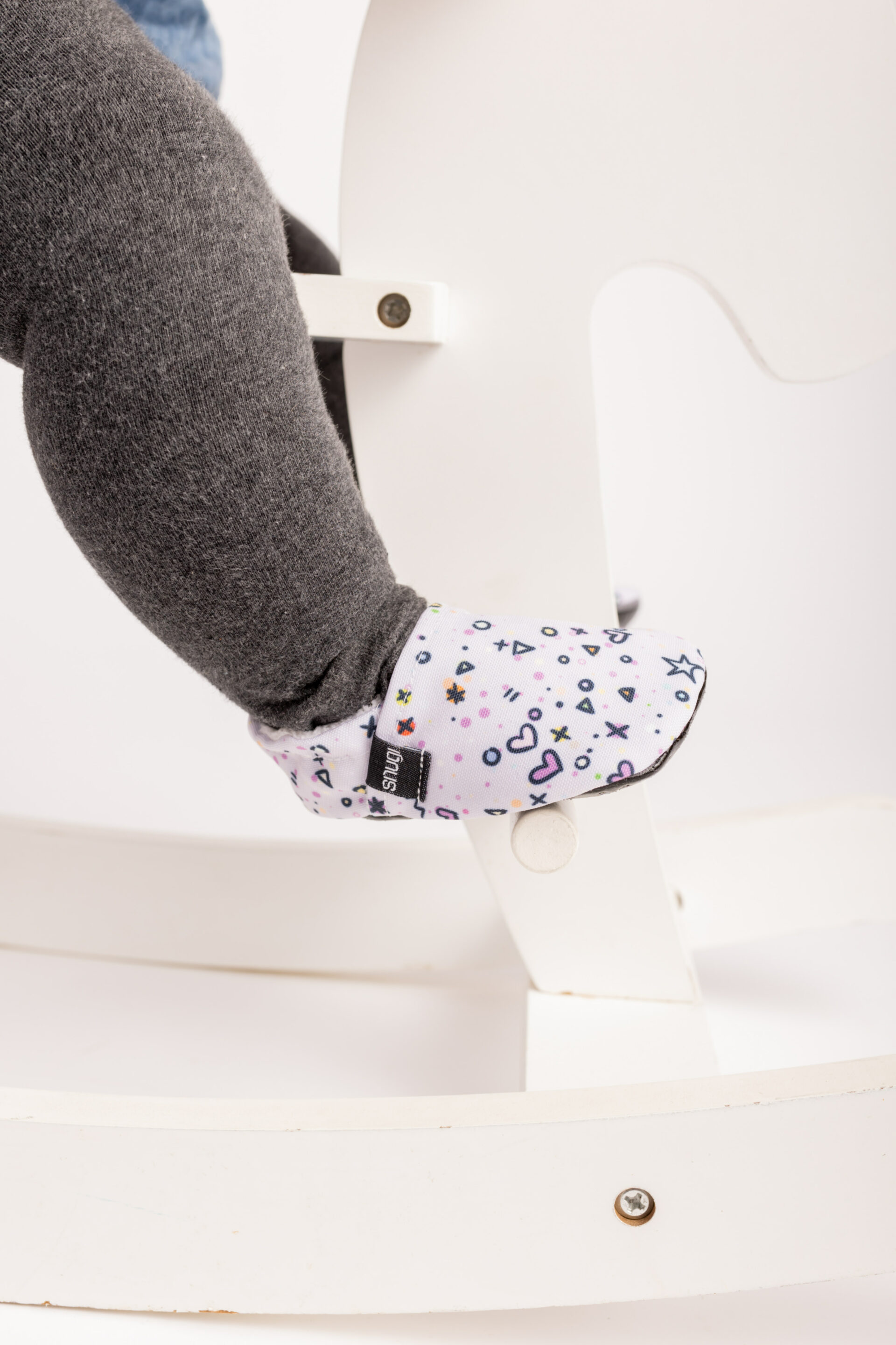 Omogočajo koži, da diha. Snugi copati so zračni, zato zagotavljajo dobre higienske pogoje in preprečujejo razvoj glivične okužbe. So enostavni za obuvanje, med igro otrok ne ovirajo in se ne sezuvajo. Otroci si jih lahko nadenejo brez pomoči.