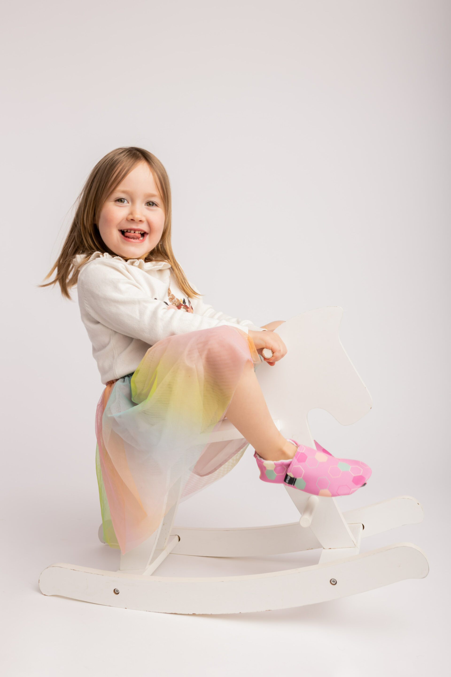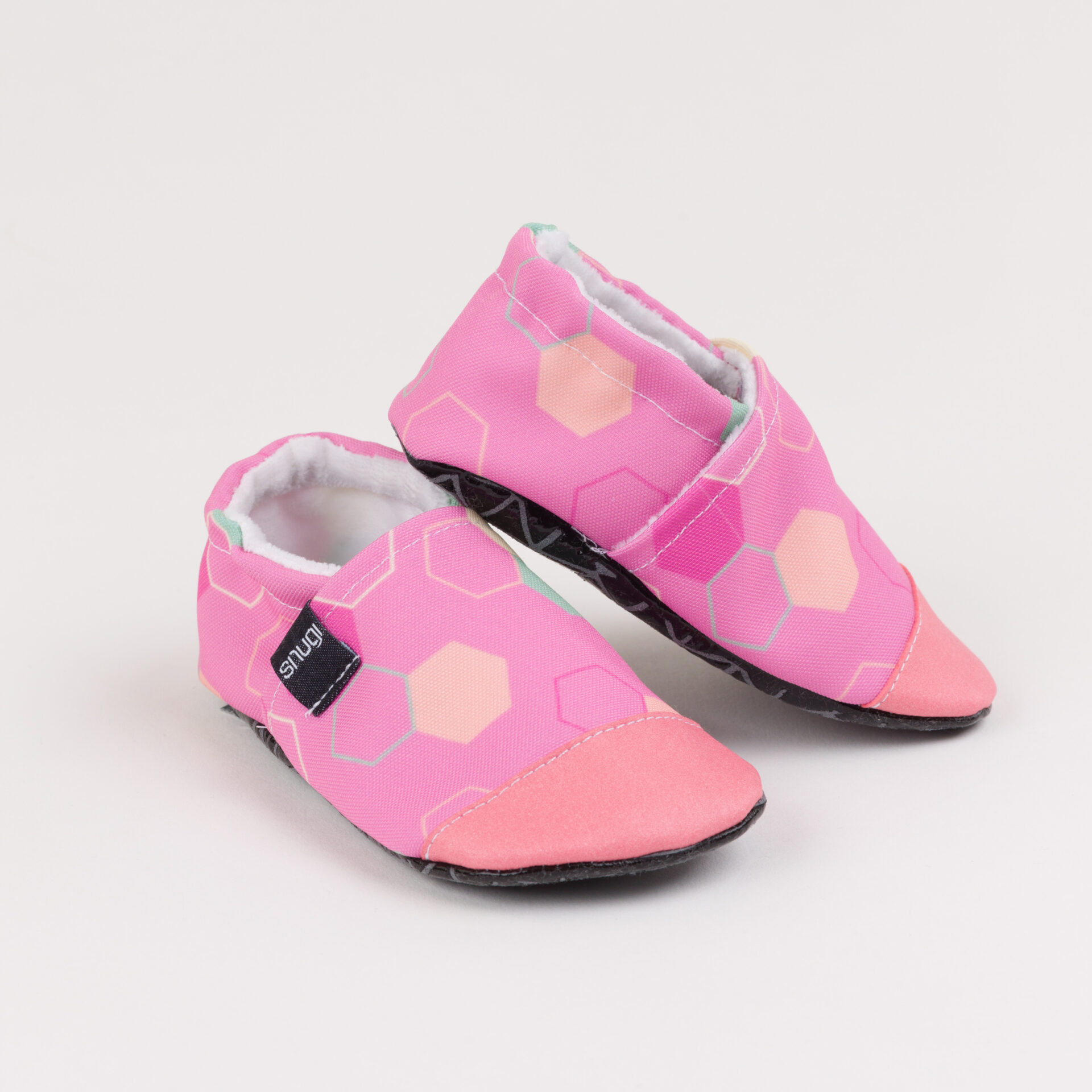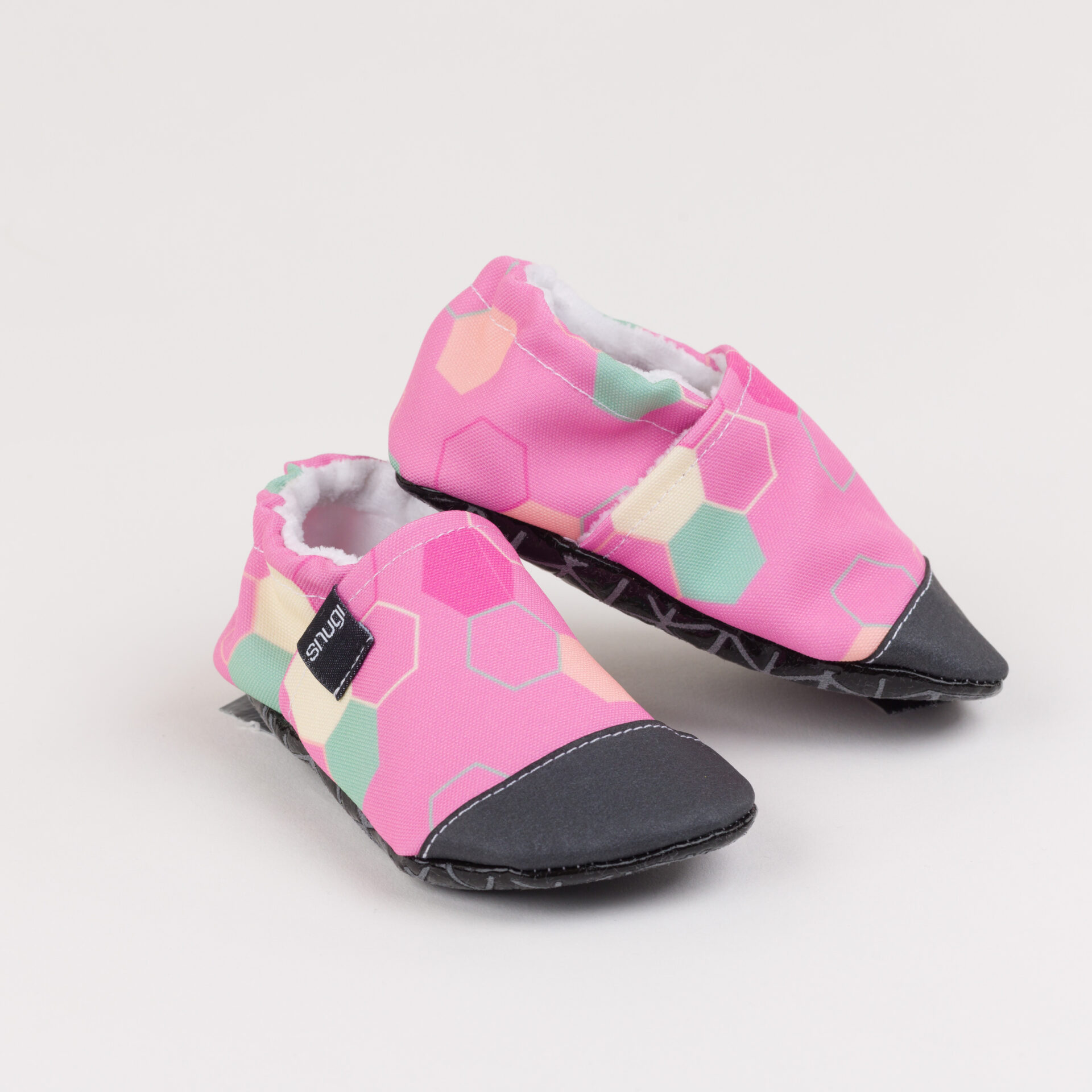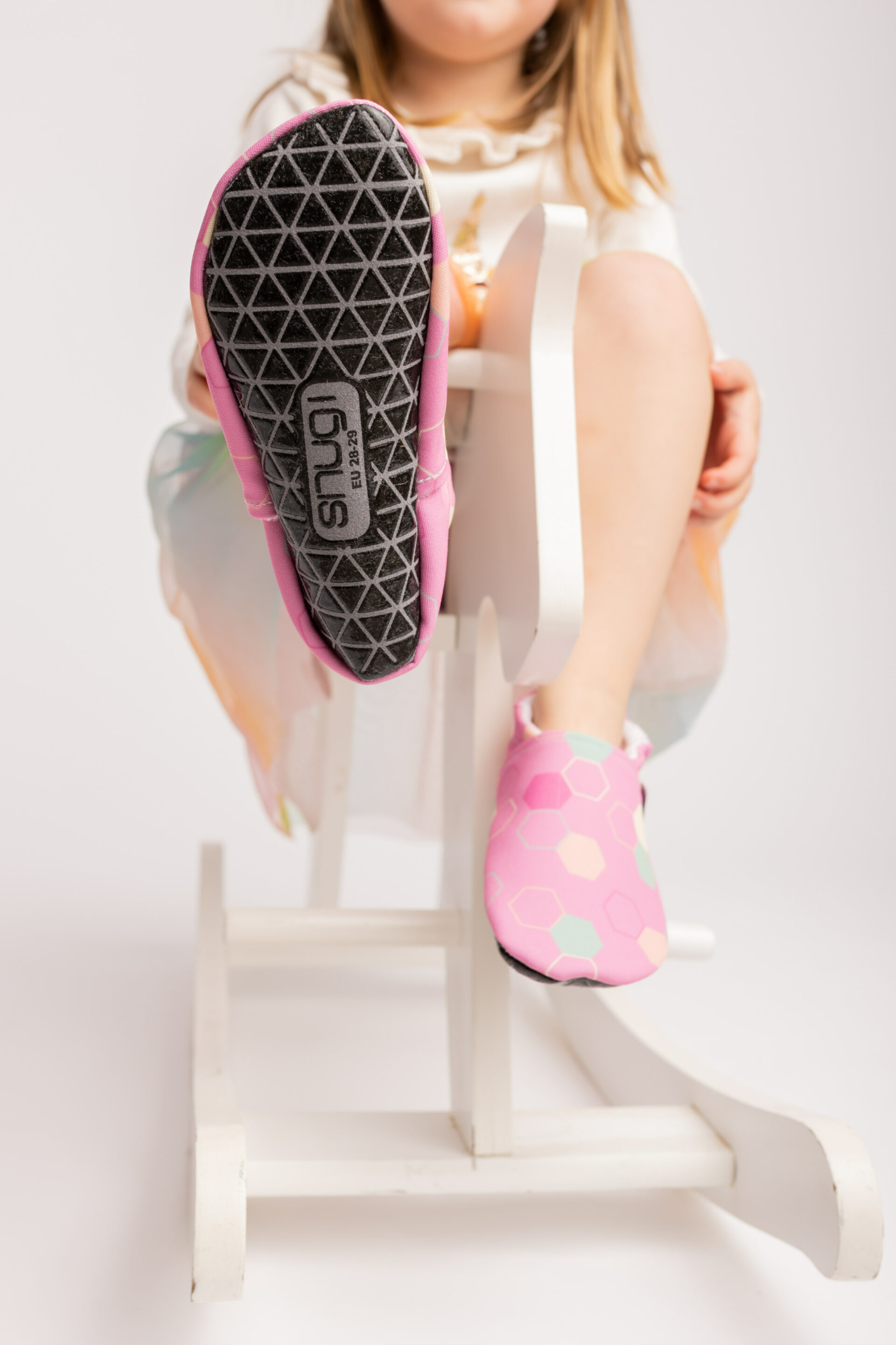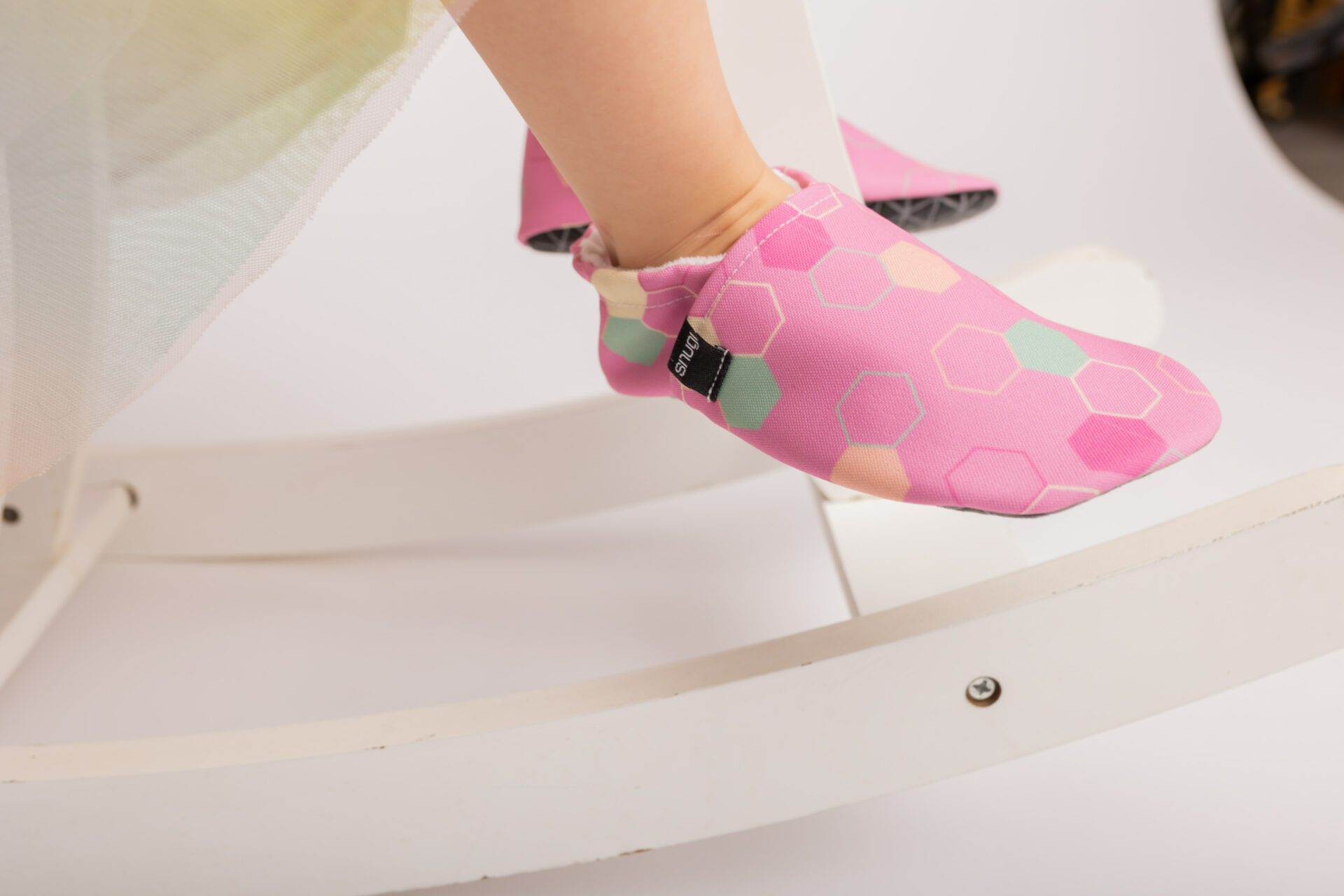 Šestkotniki na udobnih, mehkih in zračnih otroških copatih, ki so najboljši približek bosonogi hoji.
