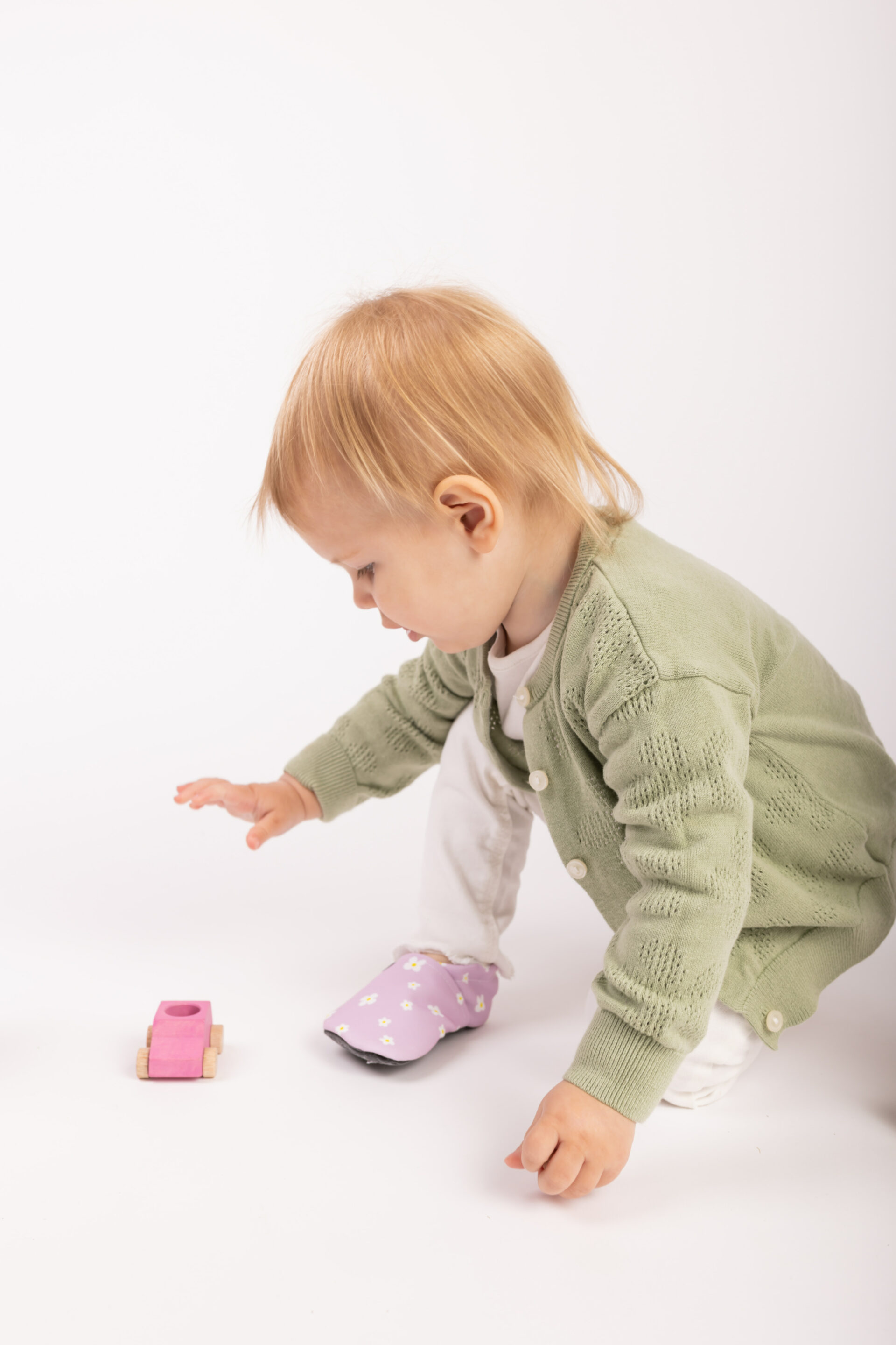 Minimalistične rožice, ki se podajo k vsaki kombinaciji. Naši otroški copati so udobni, mehki in zračni ter veljajo za najboljši približek bosonogi hoji.