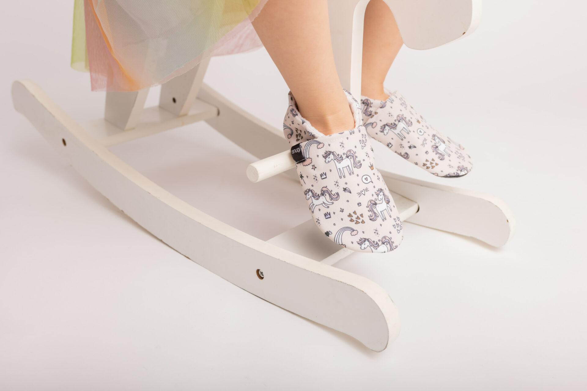 Magične moči samorogov in nepozabne pustolovščine čakajo. Naši otroški copati so udobni, mehki in zračni ter veljajo za najboljši približek bosonogi hoji.
