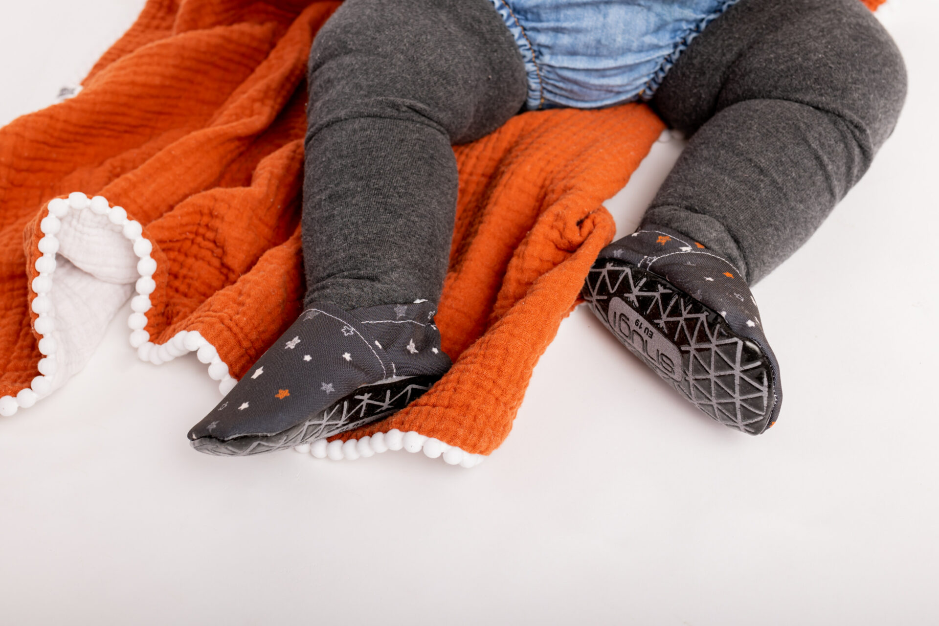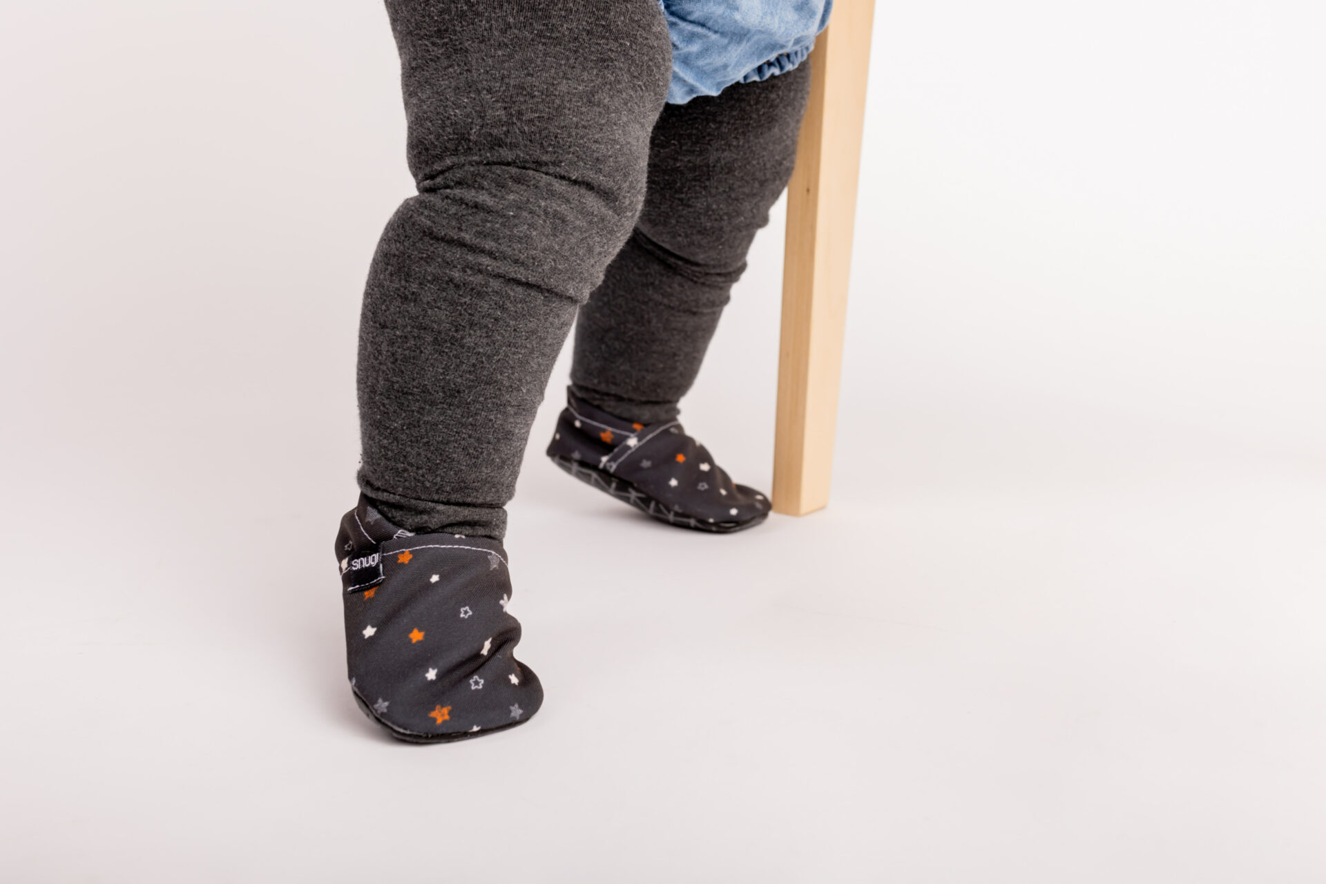 Svetle zvezdice na udobnih, mehkih in zračnih otroških copatih, ki so najboljši približek bosonogi hoji.