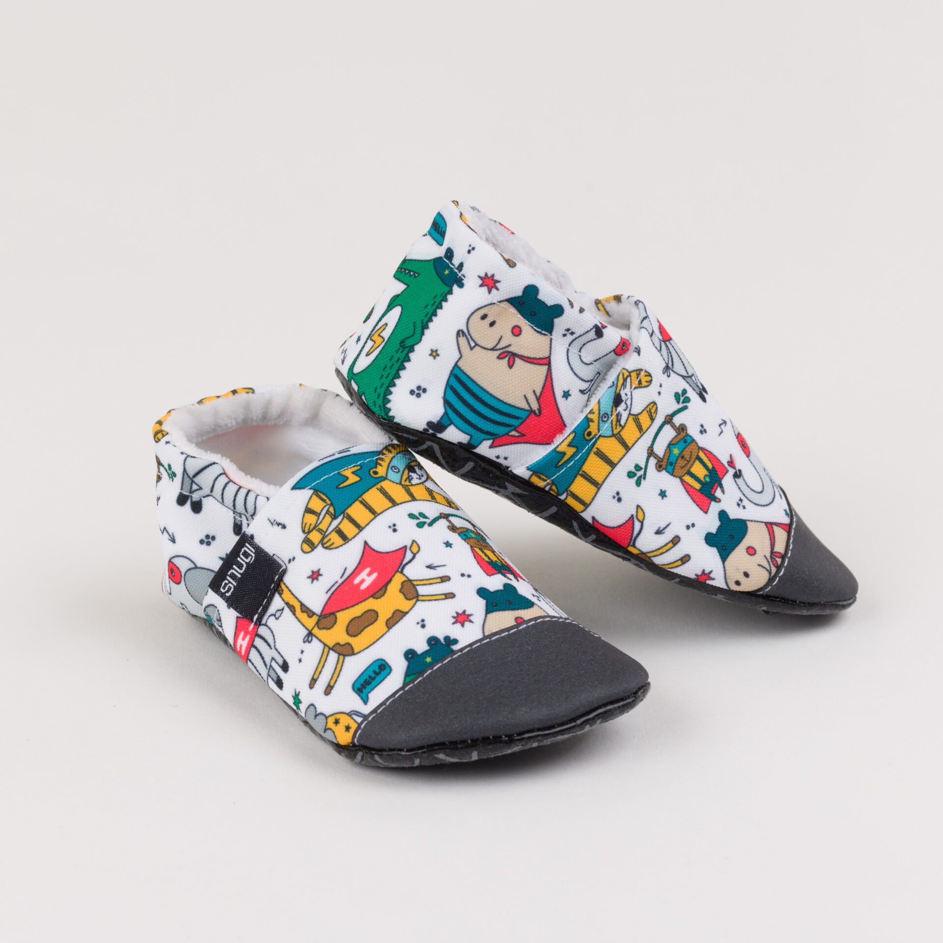 S simpatičnimi superjunaki bodo otroci premagali vse ovire na svoji poti. Naši otroški copati so udobni, mehki in zračni ter veljajo za najboljši približek bosonogi hoji.