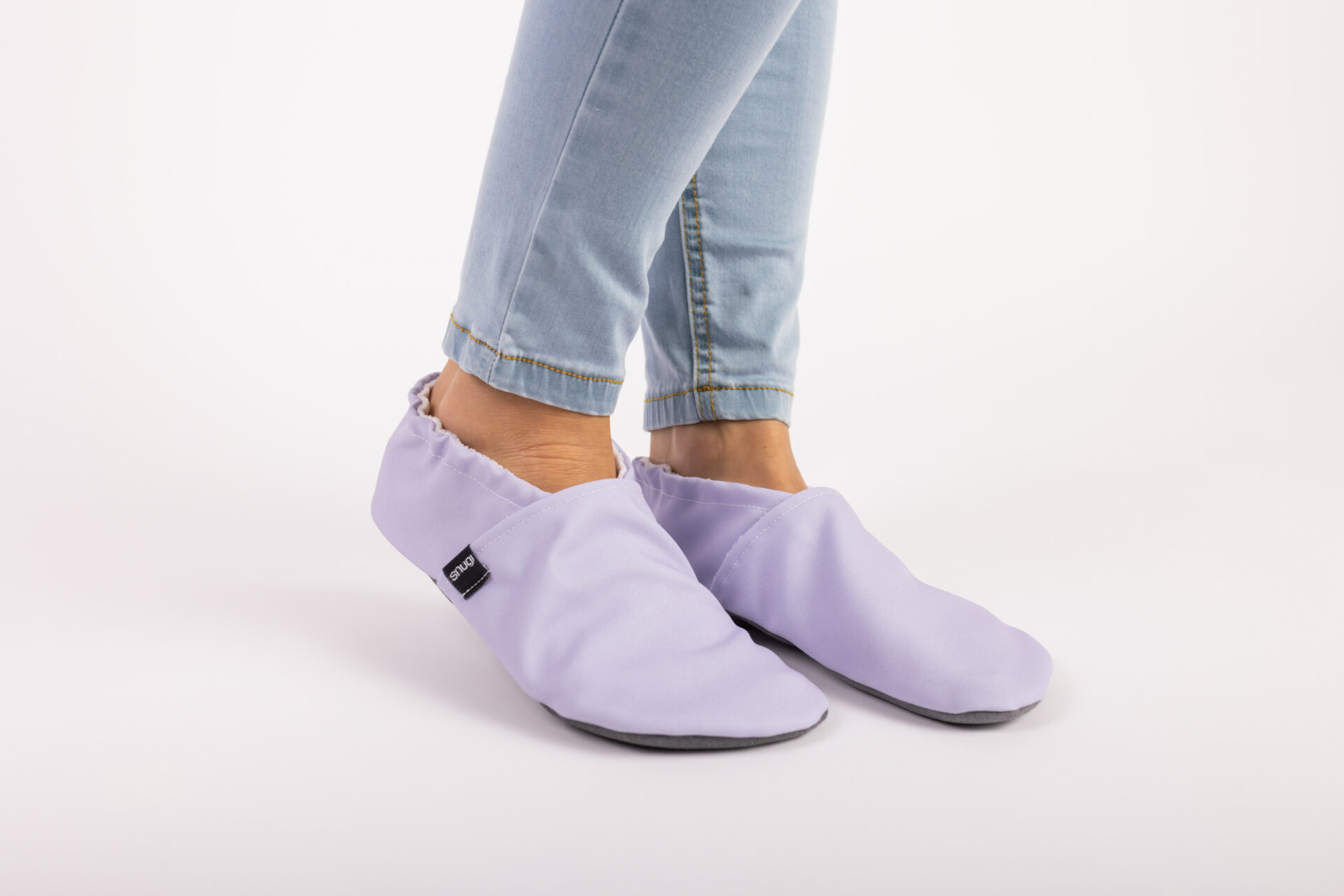 Trendi svetla vijolična barva na naših udobnih in mehkih copatih. Posnemajo bosonogo hojo in vam nudijo zaščito na vsakem koraku.