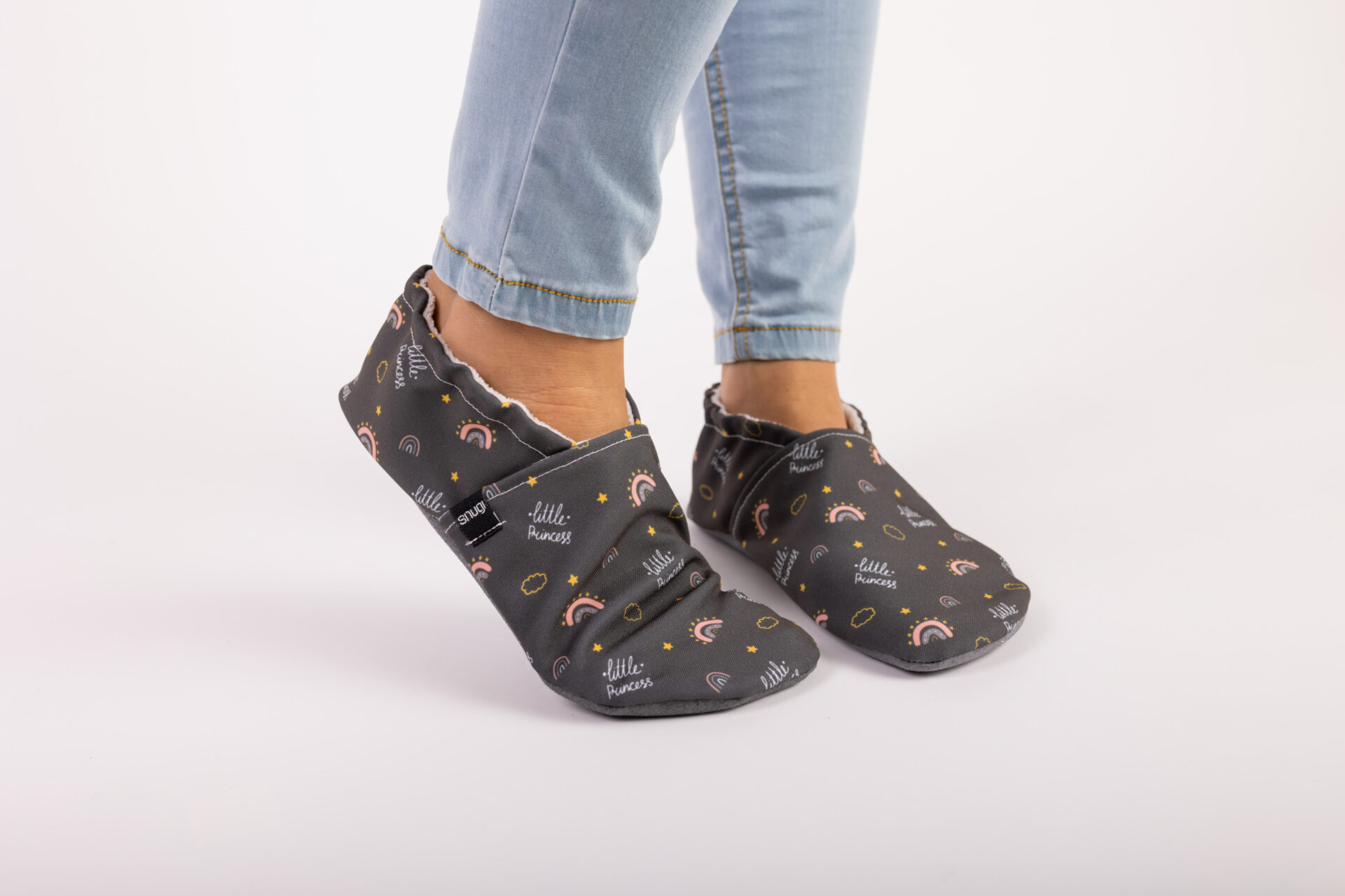 Otroci imajo različna stopala, zato smo elastiko na copatih namenoma ohranili ohlapno, da otroka ne tišči. Če se copatki zaradi tega sezuvajo, sledite našim preprostim navodilom.