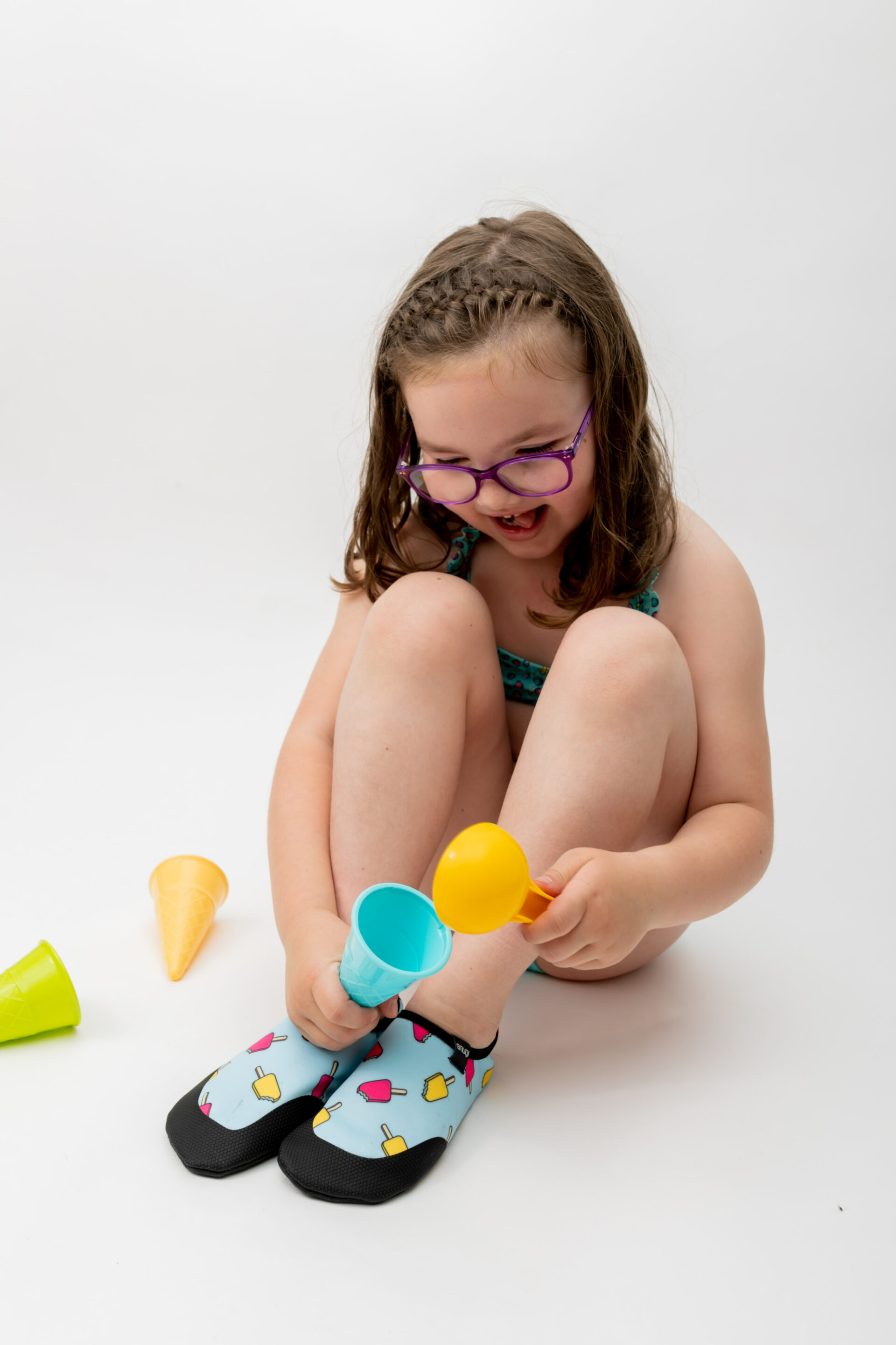 Hitro sušeči in enostavni za obuvanje. Zaradi prožnega elastičnega materiala ne ovirajo otrok med igro v vodi, hkrati pa jih ti zlahka sezujejo tudi sami. Odlična rešitev za senzorno občutljive otroke, saj z gumico nežno oprimejo stopalo in preprečijo vstop mivki in kamenčkom.