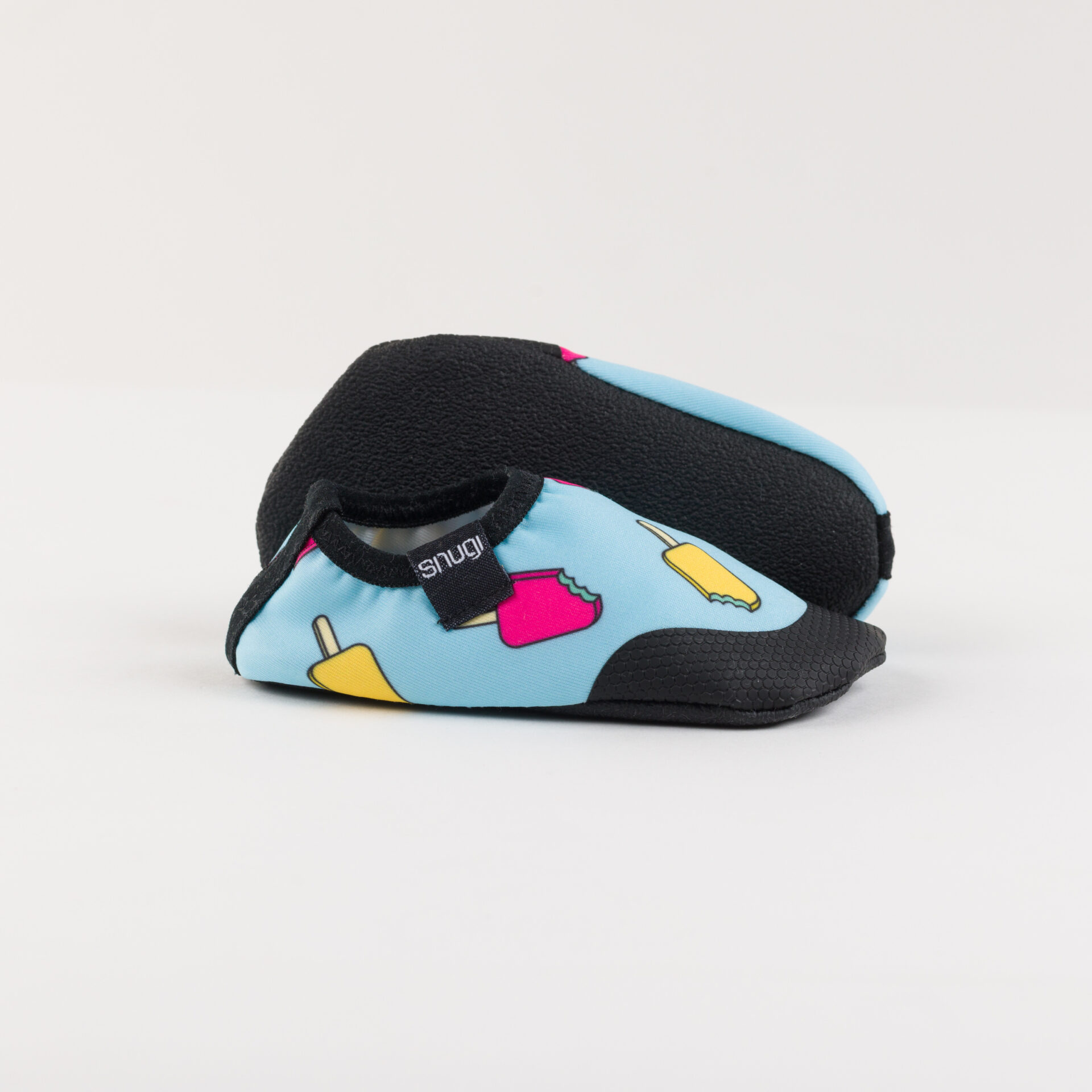Ne ovirajo plavanja in ščitijo stopala. Podplat iz visokotehnološkega nedrsečega materiala zagotavlja brezskrbno igranje in čofotanje. Hkrati pa varuje malčkove nogice pred vročimi ali grobimi površinami ter spolzkimi ali ostrimi predmeti. Narejeni so za aktivno uporabo na bazenu, na plaži, na igrišči ali za vodne športe.